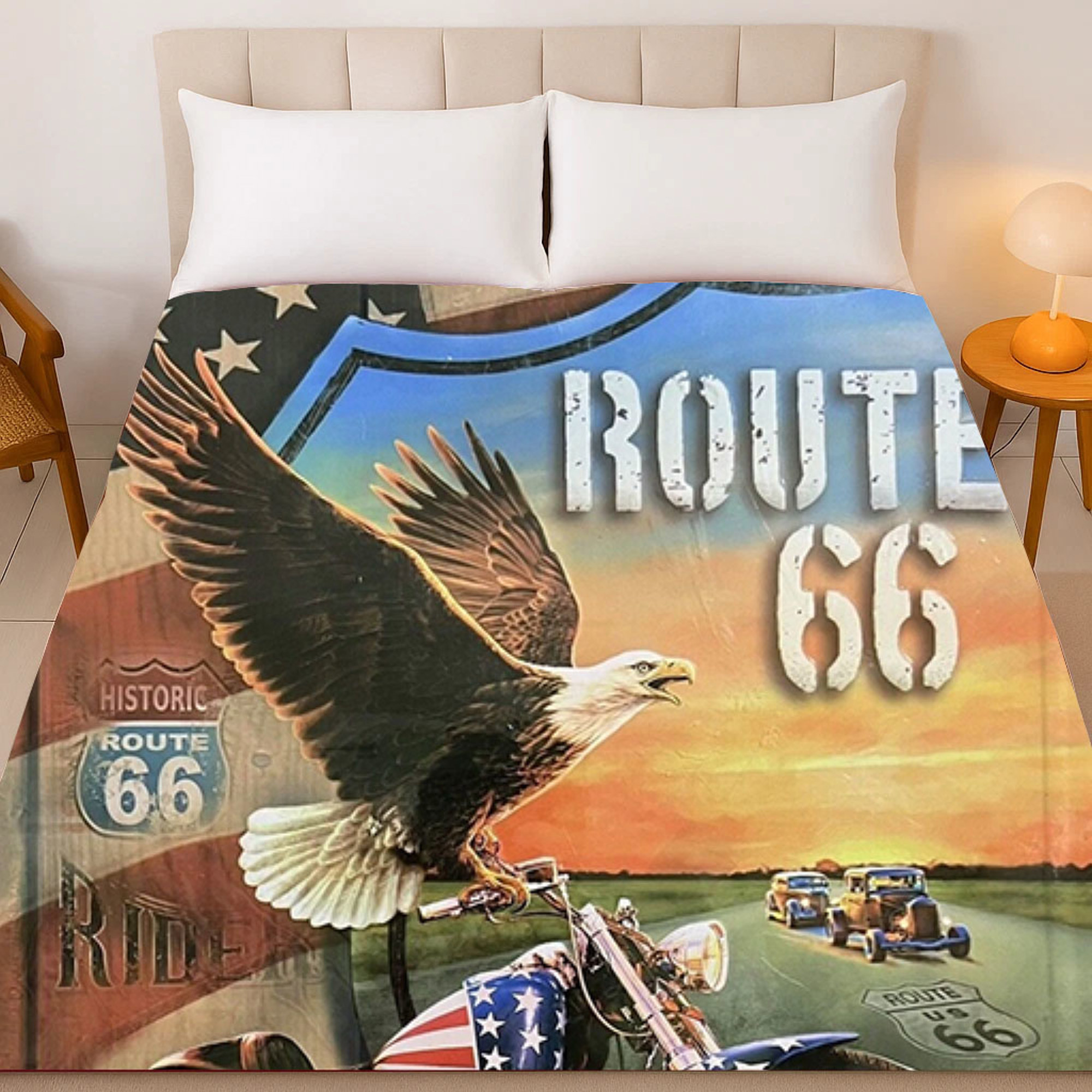 Wrap Yourself in Comfort: Route 66 USA Motorcycle Blanket - Plush Queen Size Throw - Extremely Soft.