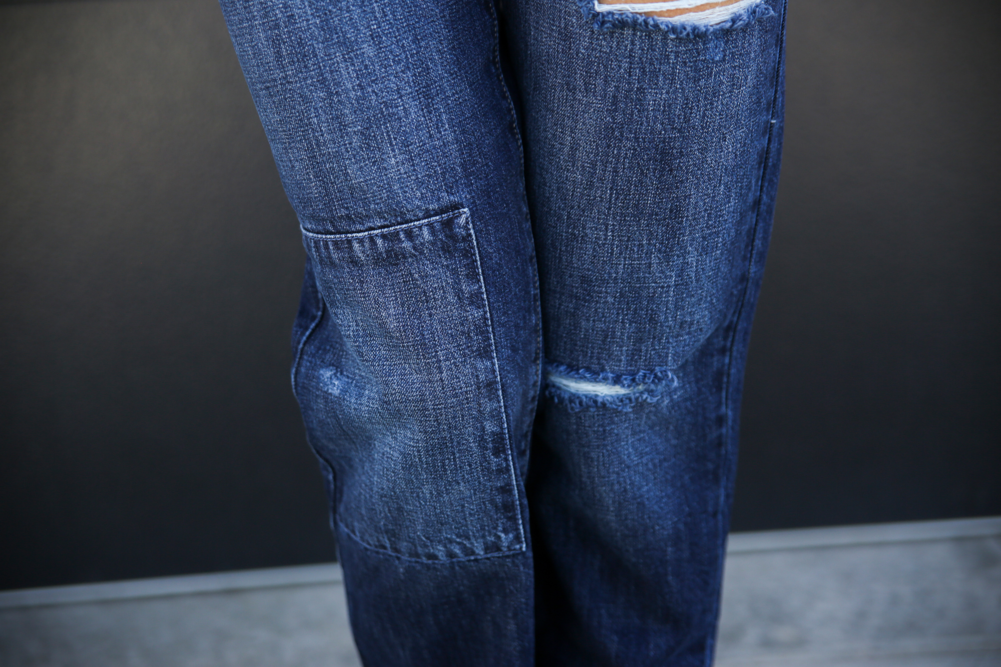 Our Kancan High Rise 90’s Boyfriend Jeans feature a high-rise, relaxed fit with a slightly tapered leg. Heavy distressing and a knee patch offers a lived-in look.