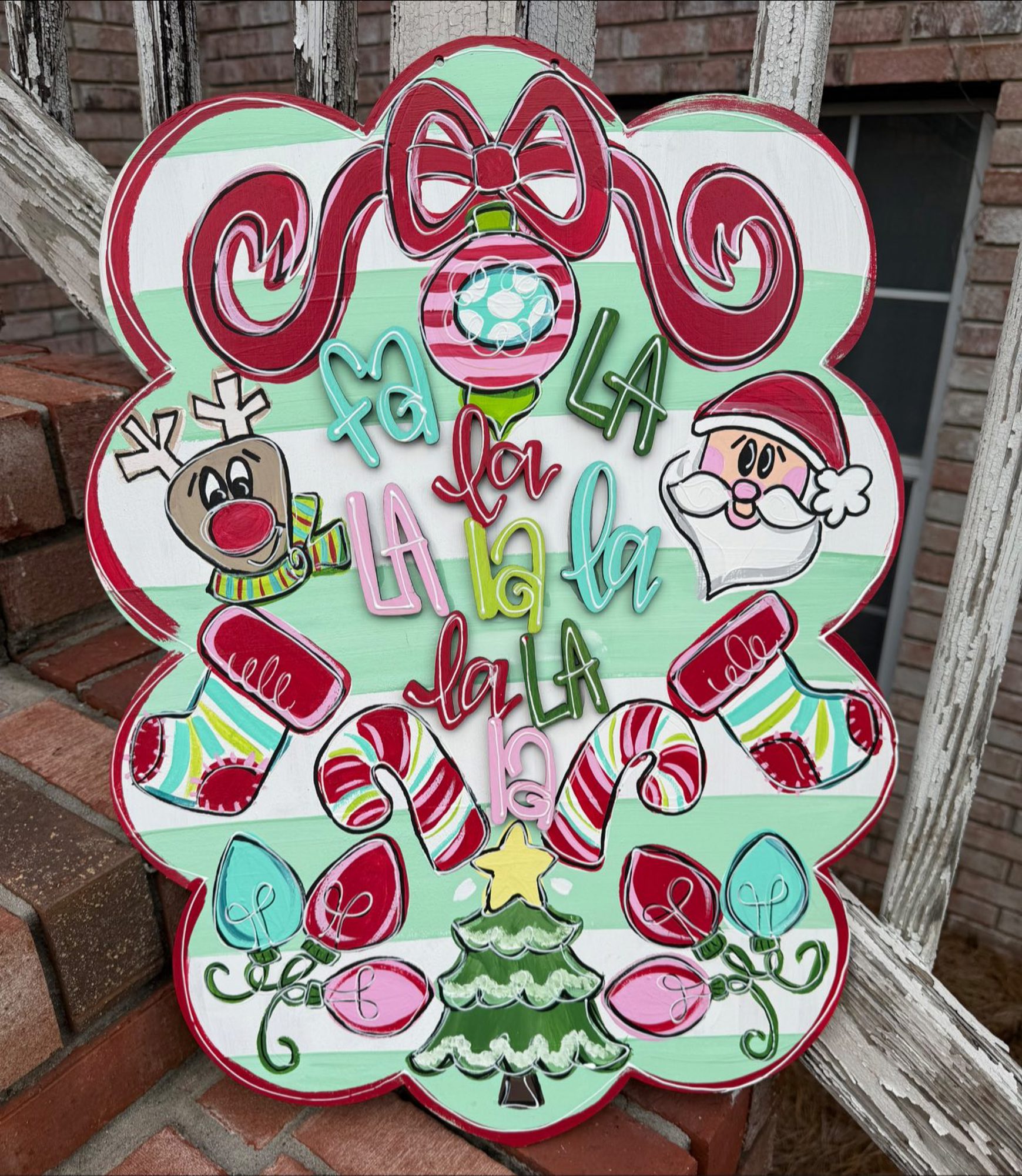 Fa La La Christmas Door Hanger – Hand Painted Holiday Porch Sign