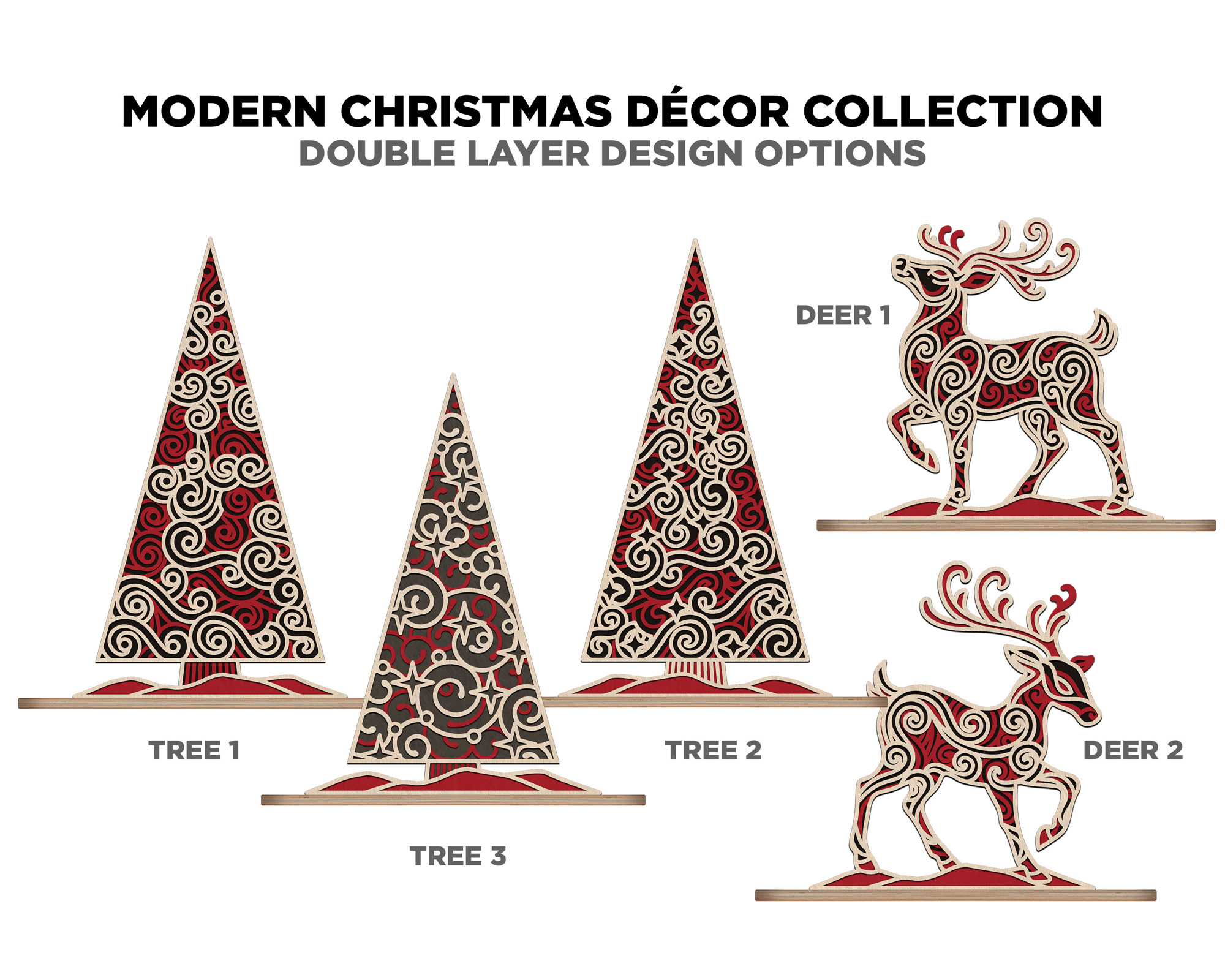 Featuring 5 unique designs — including elegant reindeer and stylized trees — each piece captures the warmth and creativity of the season with clean, modern lines and timeless appeal.