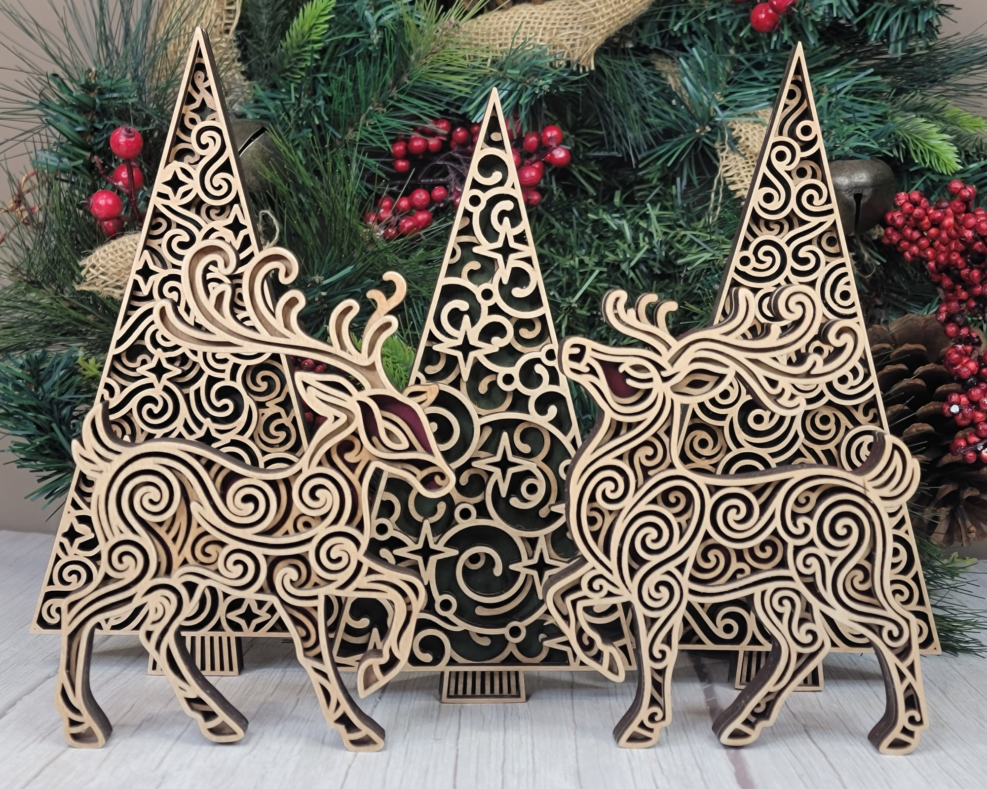 Modern Christmas Décor Collection | Baltic Birch Reindeer & Tree Set | OBX Made Minimalist Holiday Decorations
