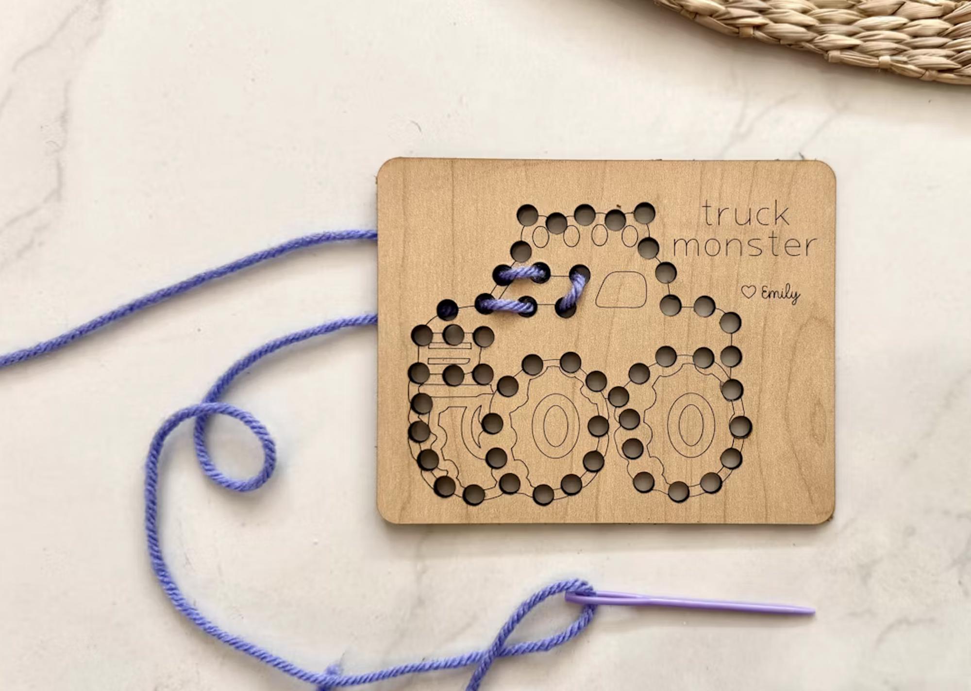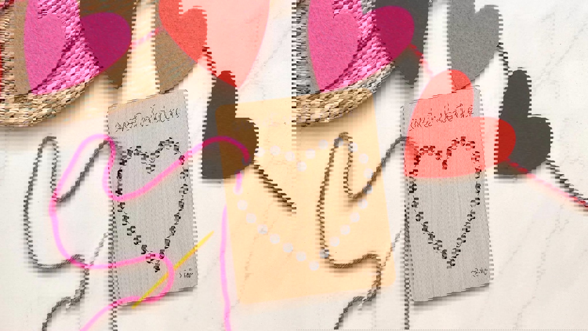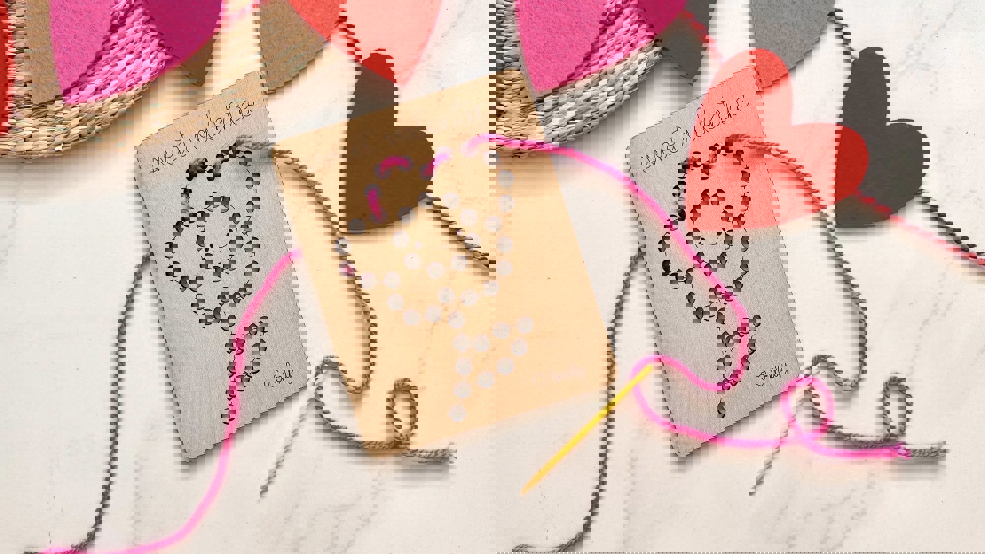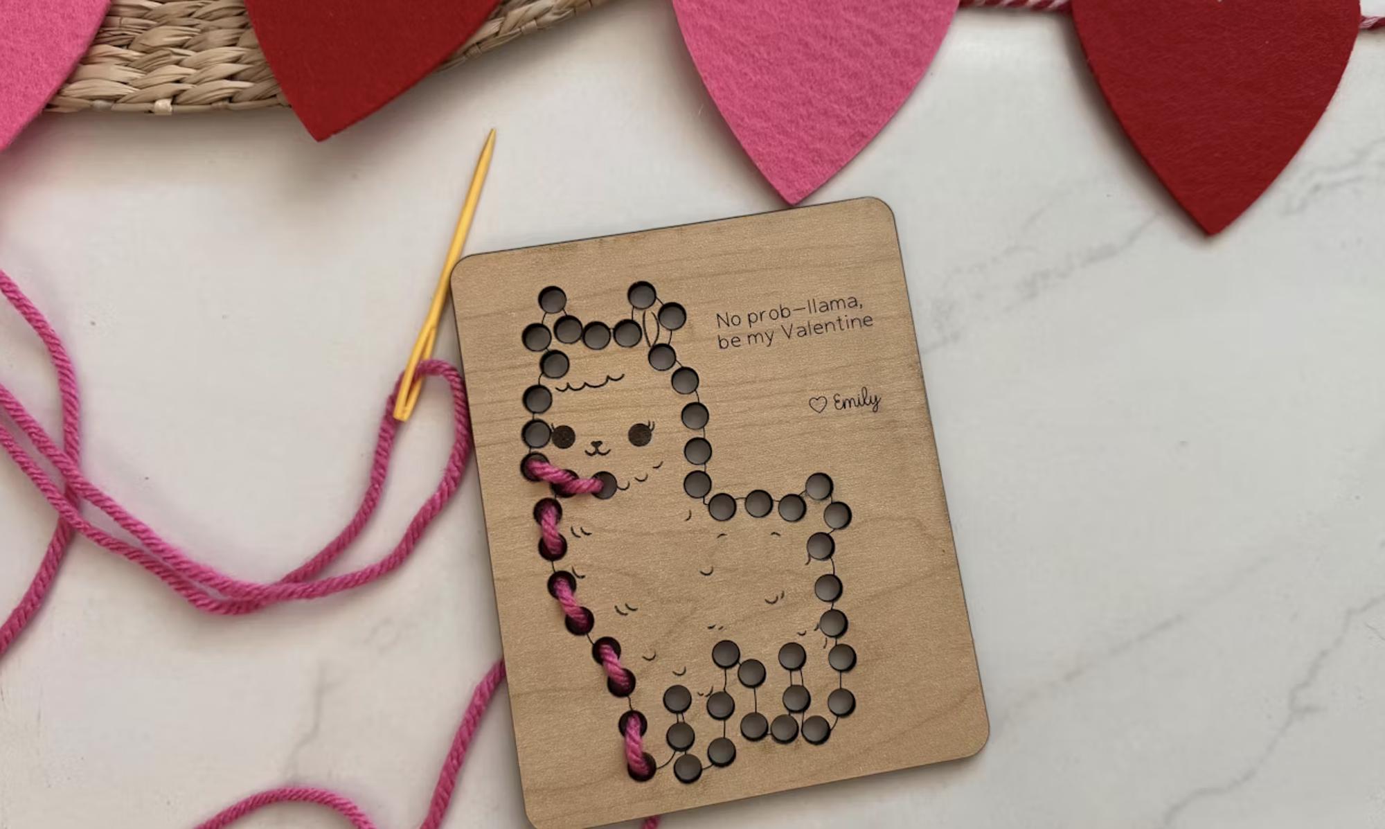Each wooden “card” is cut into a fun Valentine-friendly shape and engraved with your child’s name, making it a one-of-a-kind keepsake made just for them. Pre-drilled holes allow little hands to practice sewing and lacing with ease, turning crafting time into a fun and engaging activity.