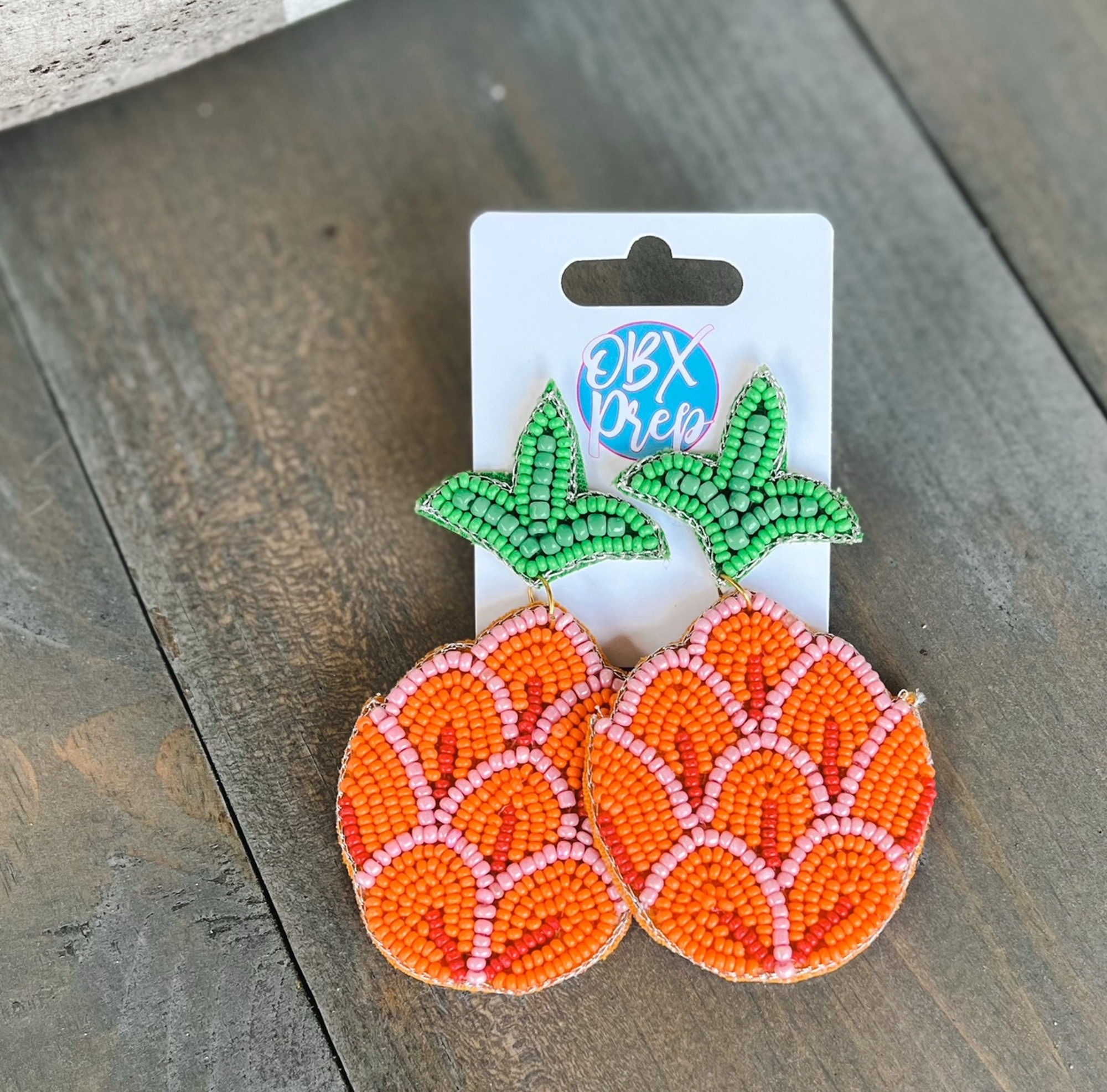Preppy Pineapple Acorn Dangle Seed Beaded Earrings