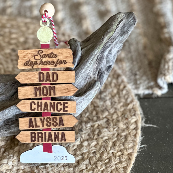 Custom Hand-Painted Family Road Sign Christmas Ornament – Personalized North Pole Style