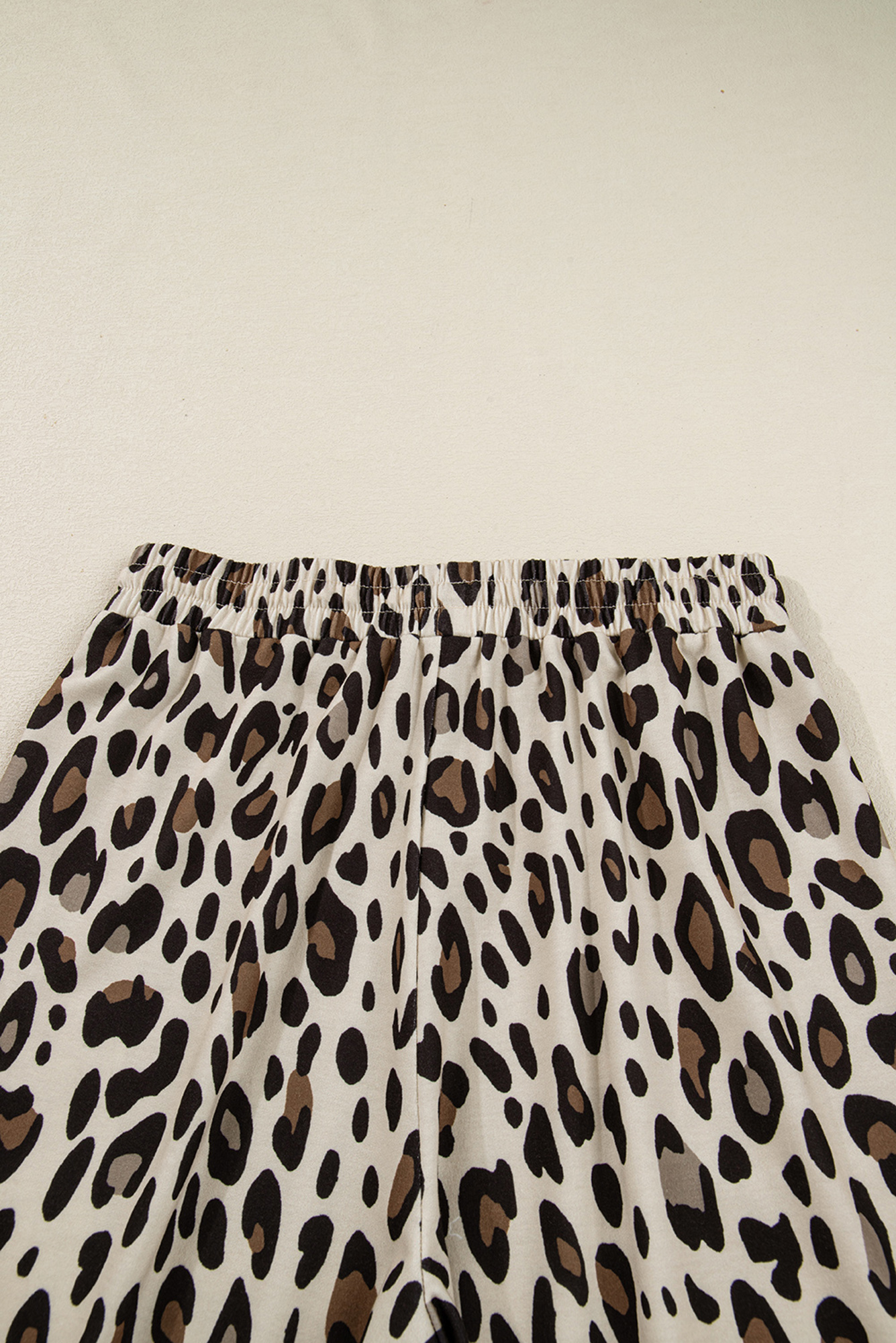 Khaki Leopard Wide Leg Cropped Pocket Pants
