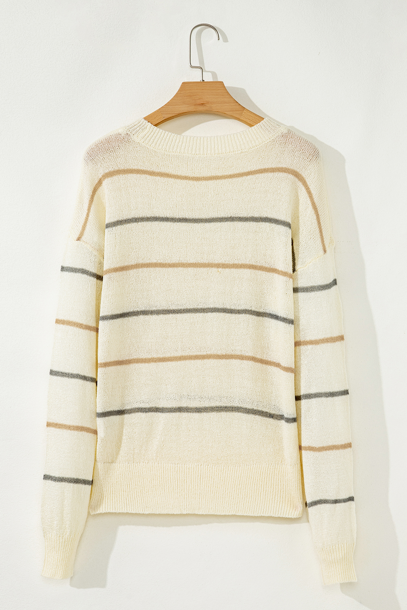 This casual sweater showcases a chic striped silhouette that's perfect for effortless style. Its relaxed fit and drop shoulder design provide all-day comfort, making it a go-to for chilly days or cozy weekends. Soft and warm, this trendy piece is ready to become your new favorite.