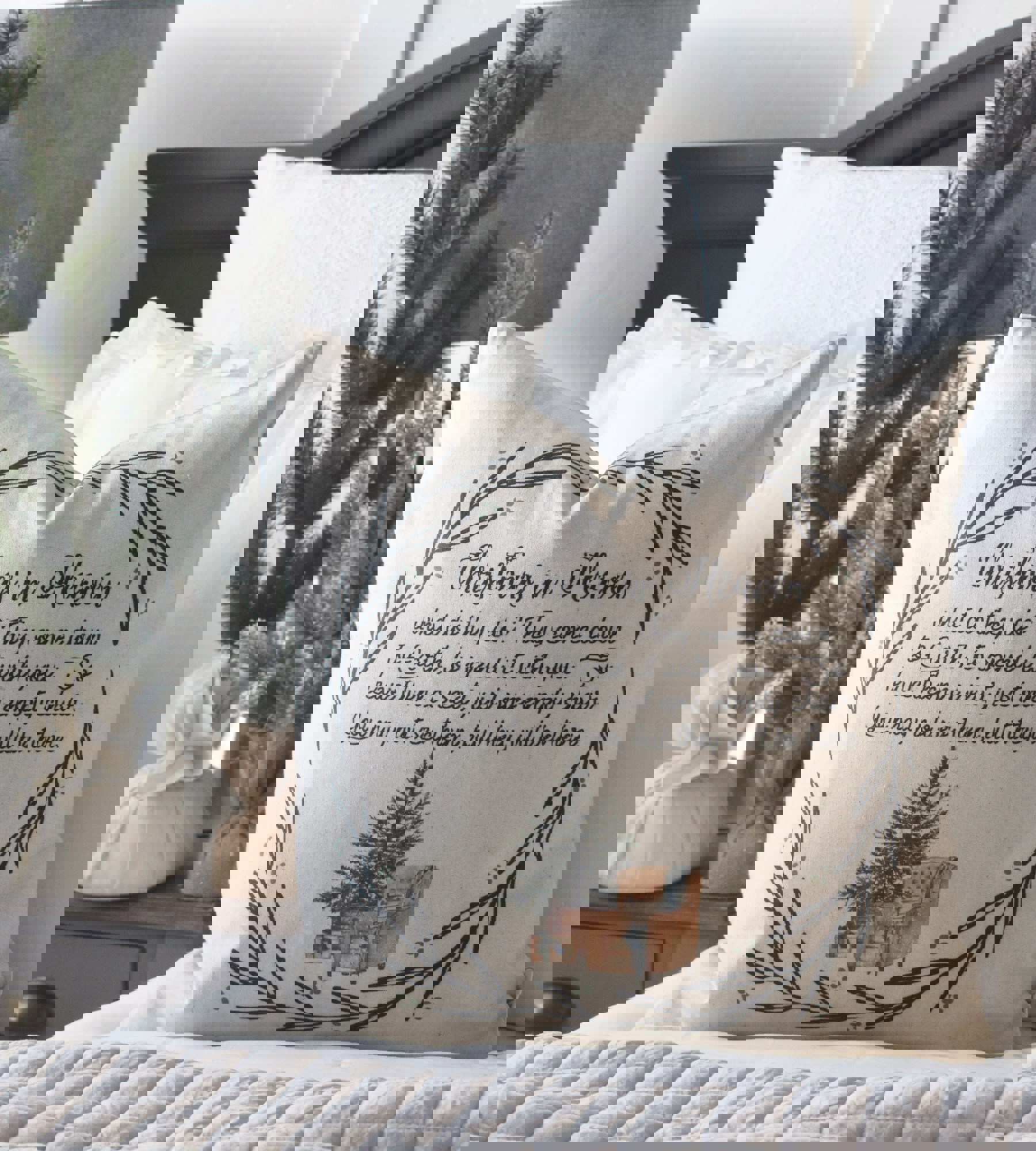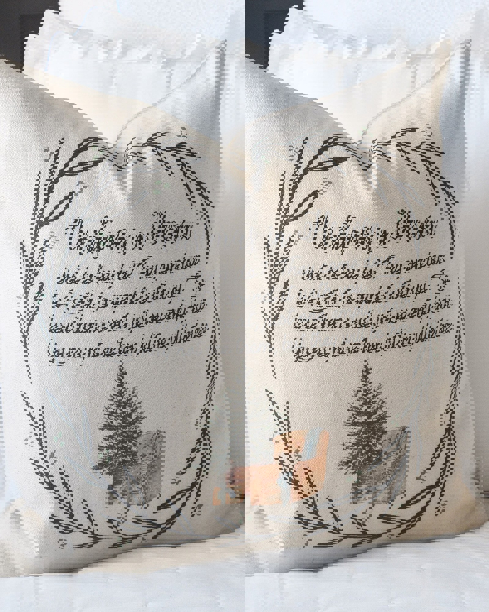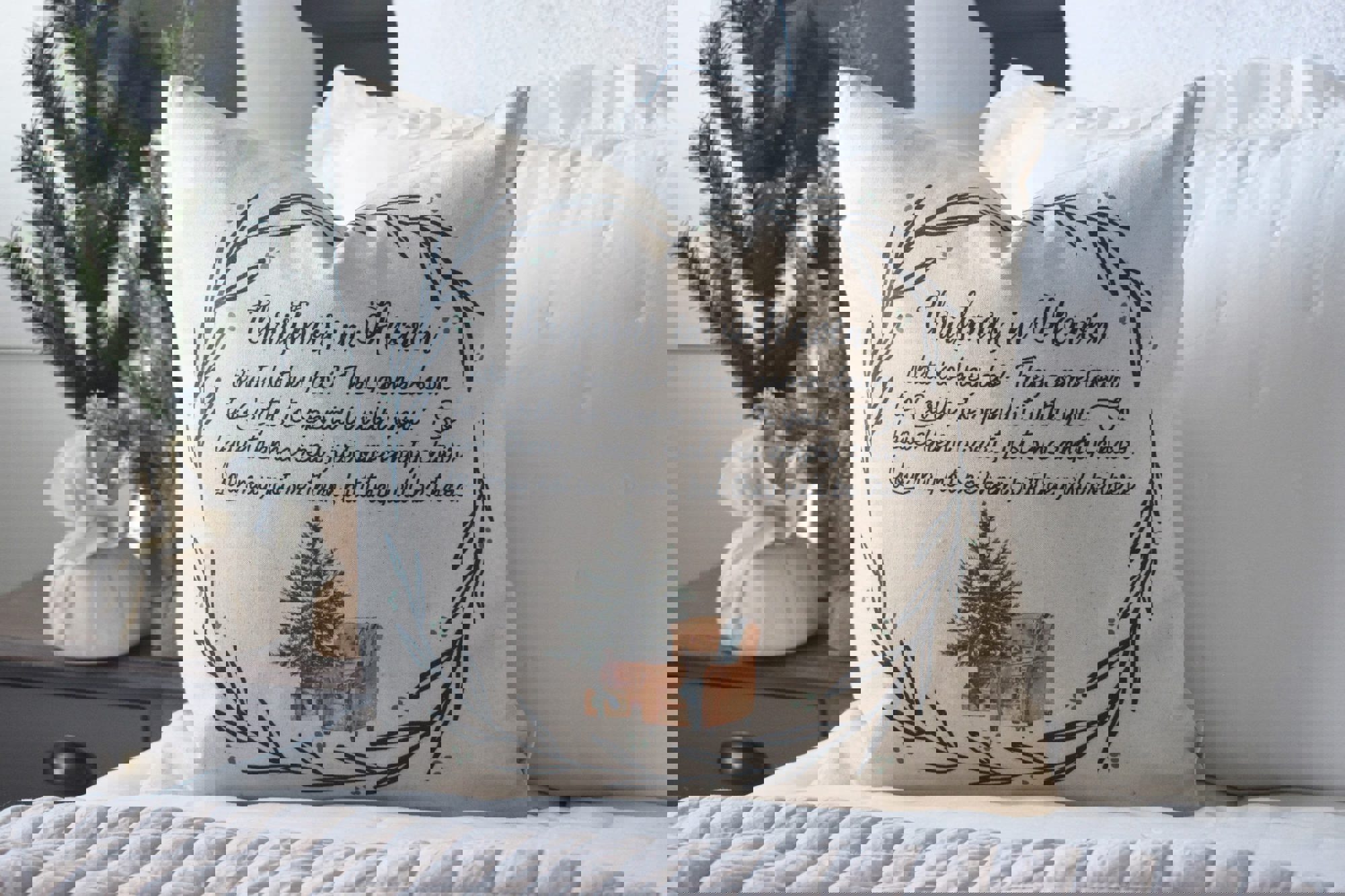 Christmas in Heaven pillow cover shown on Natural Faux Linen fabric.