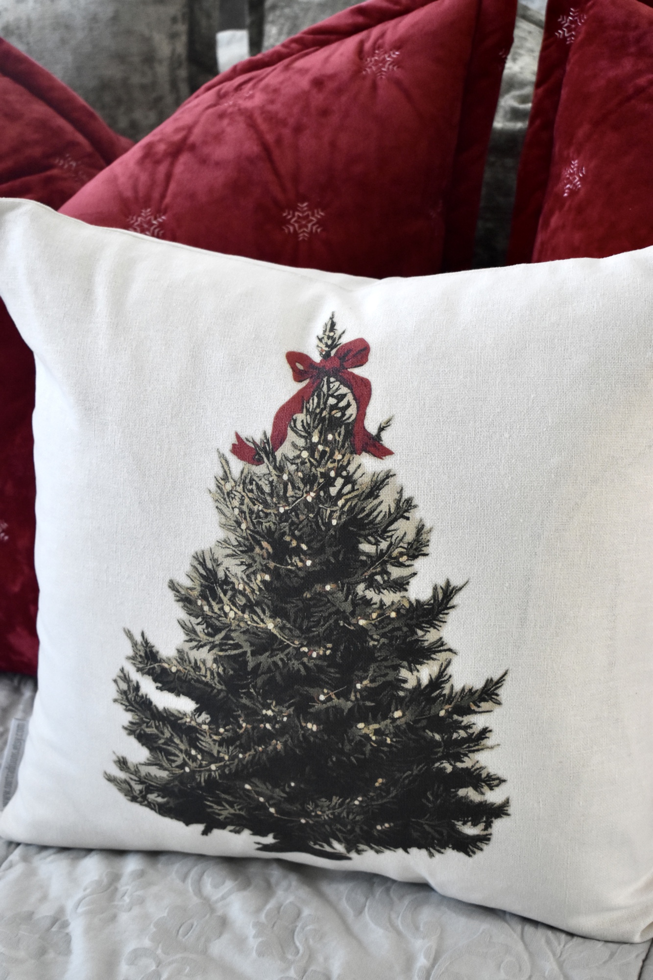 Bring timeless holiday charm to your home with this elegant Christmas Tree Pillow Cover. Featuring a beautifully detailed evergreen topped with a festive red bow, this pillow instantly adds warmth and cheer to any space. The neutral background complements a variety of styles—from cozy farmhouse to modern Christmas décor.