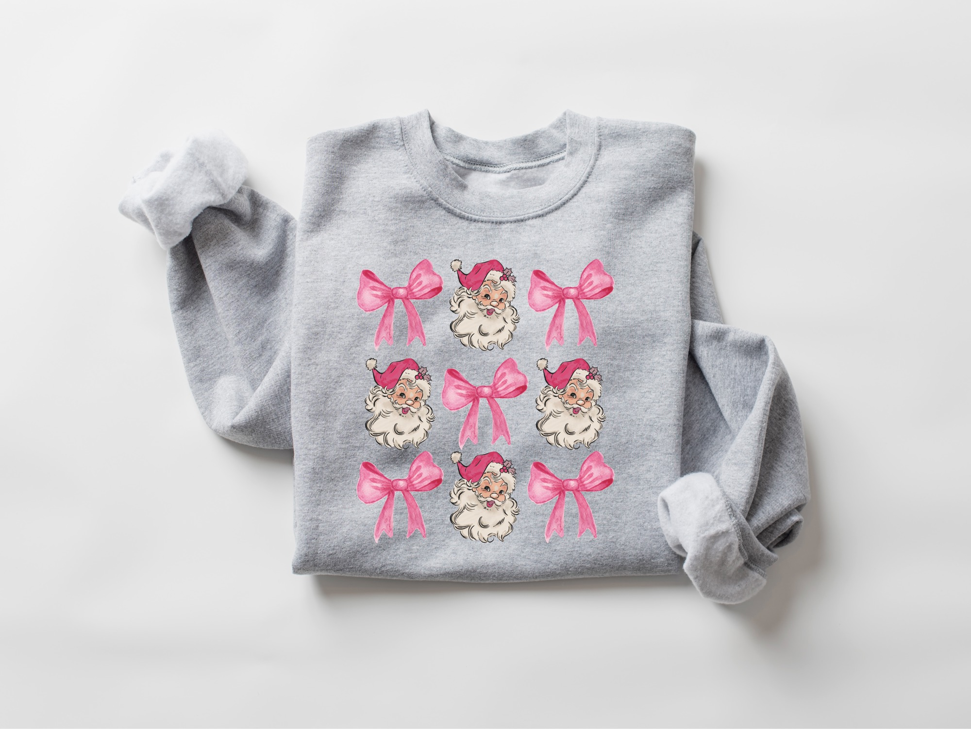 Santa & Bows Christmas Pullover Sweatshirt, Christmas Sweater, Christmas Pajamas, Christmas Outfit