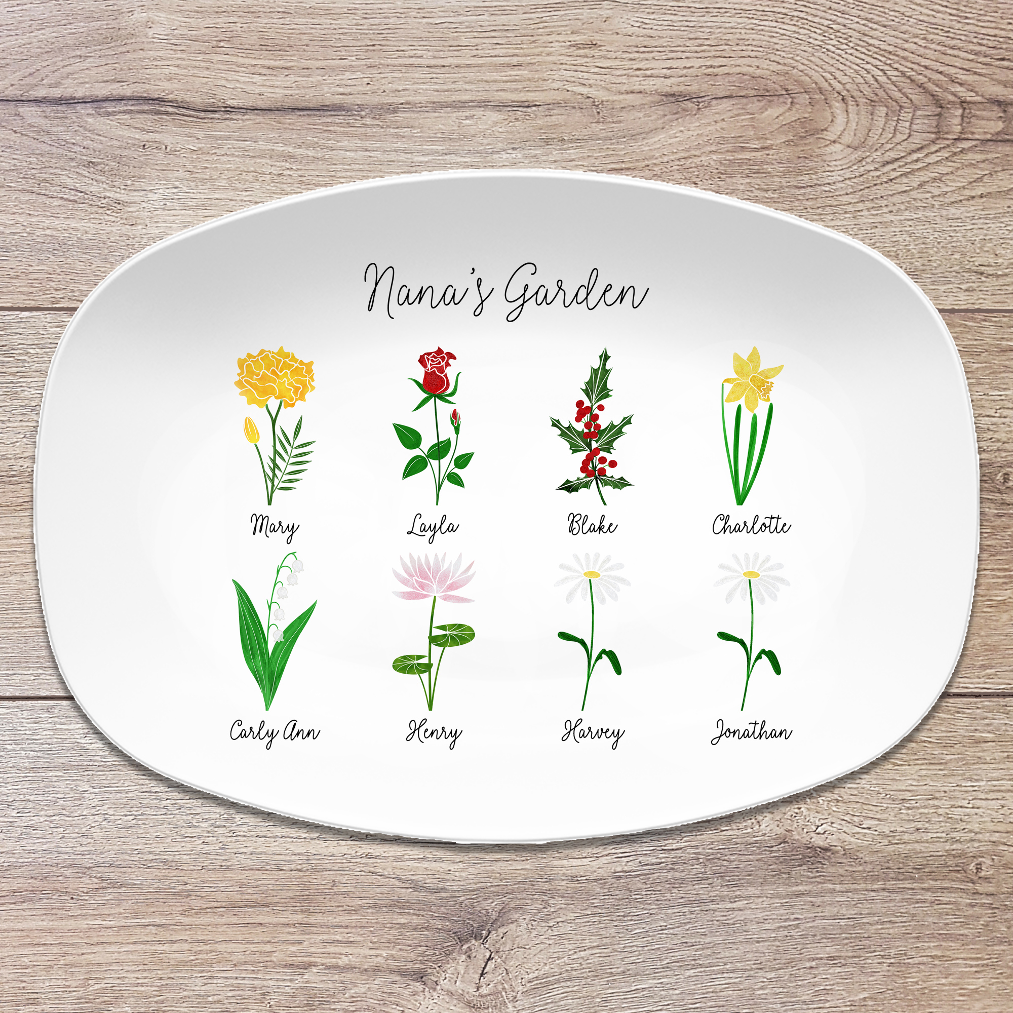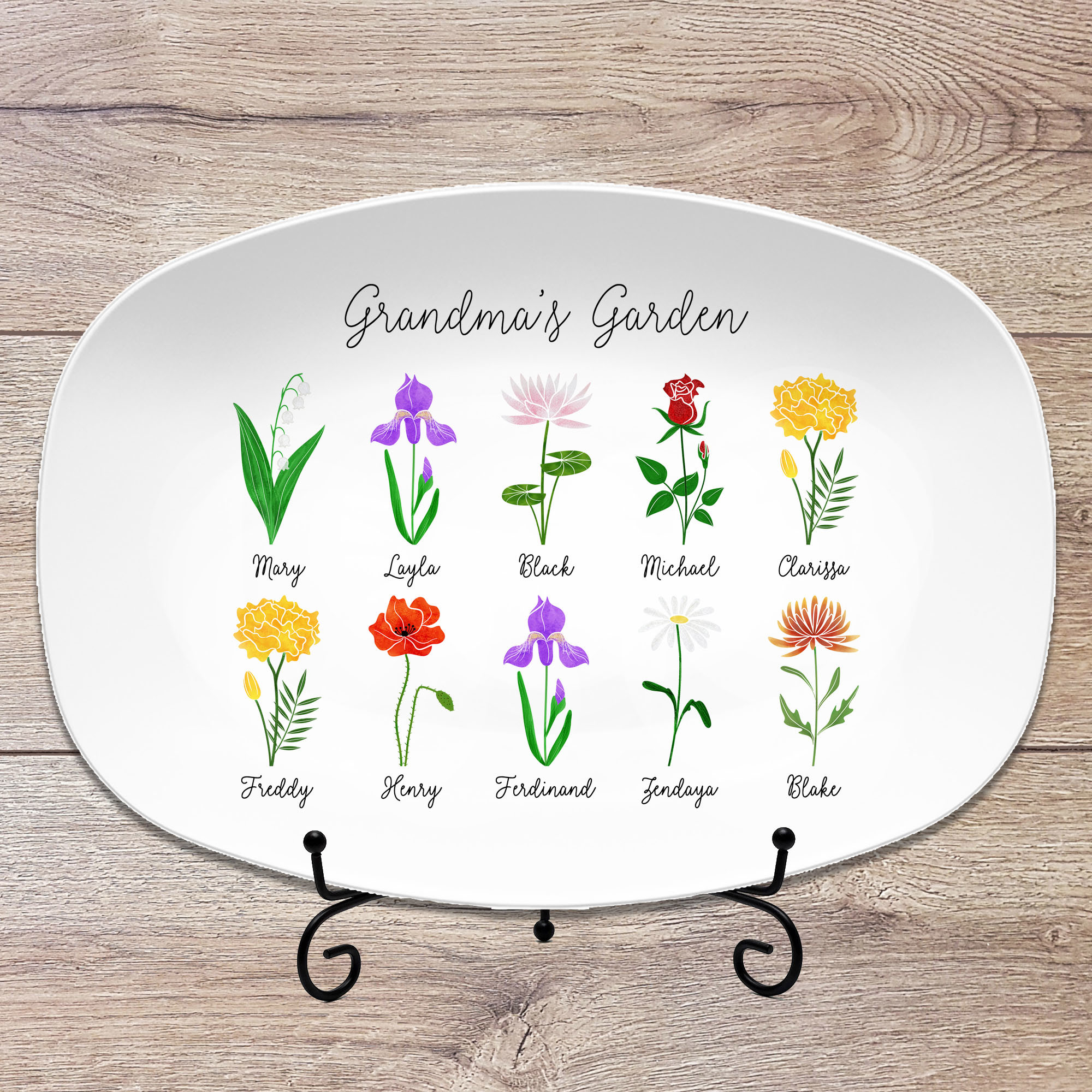Birth Month Flower Family Personalized Platter, Mother's Day Custom Gift, Grandma's Garden, Gift from kids
