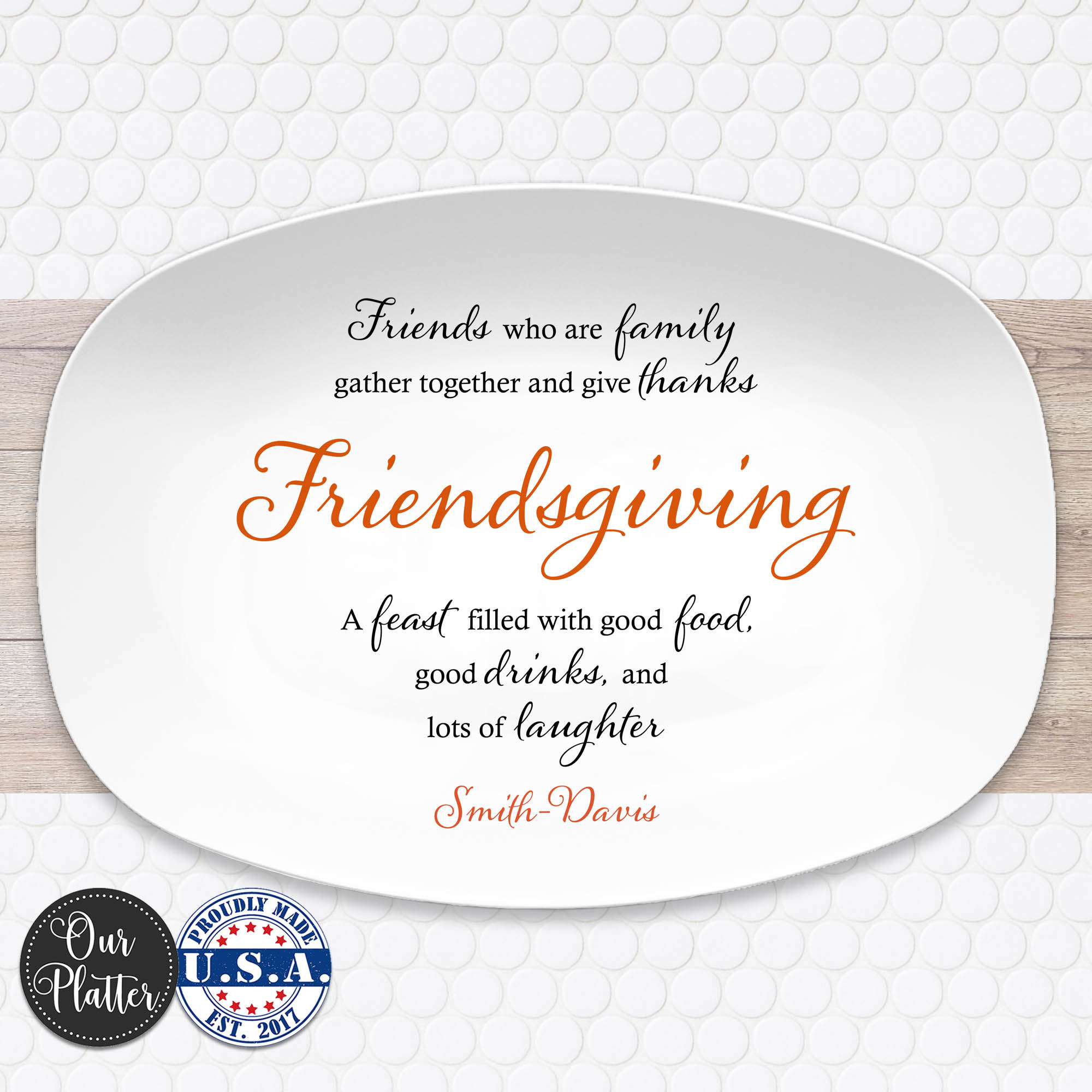 Celebrate friendship and gratitude with a Friendsgiving platter filled with cozy fall charm — the perfect gift for your chosen family. This platter makes a beautiful addition to your Friendsgiving table or fall decor — and a thoughtful hostess gift for the friend who brings everyone together.