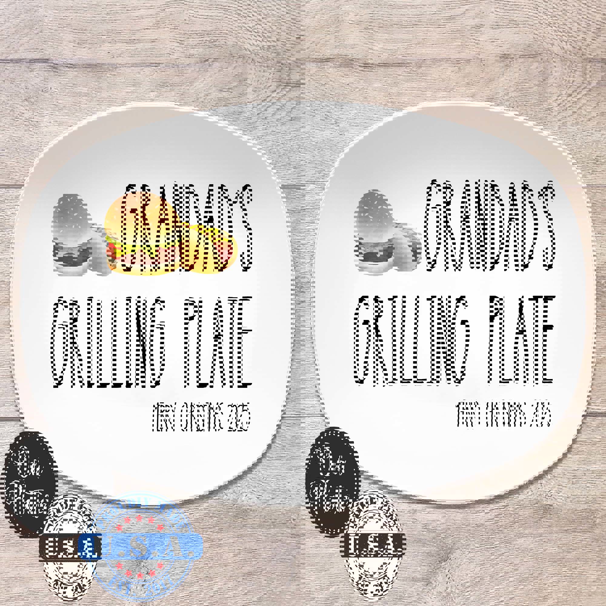 • Large text such as "Dad's Grilling Plate"