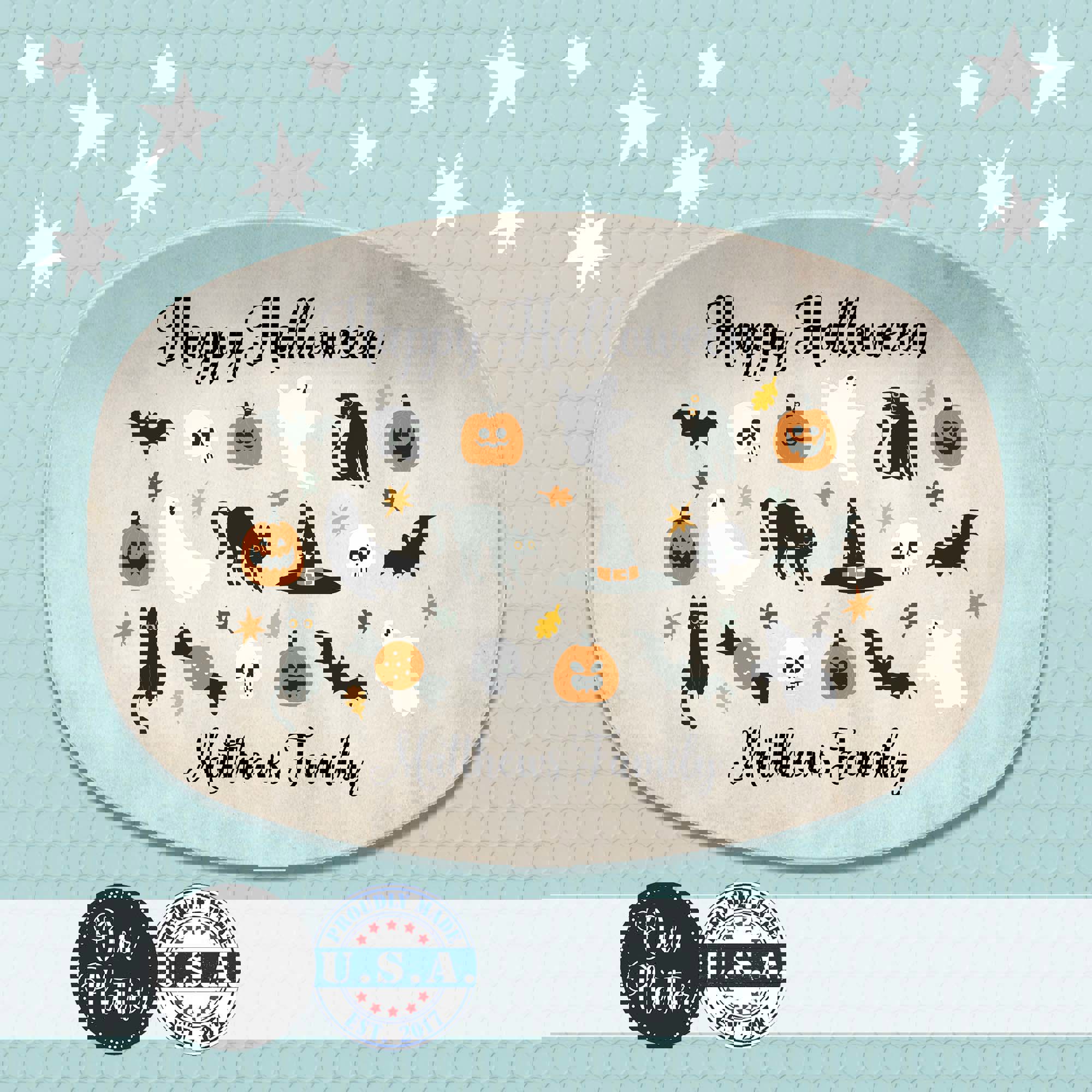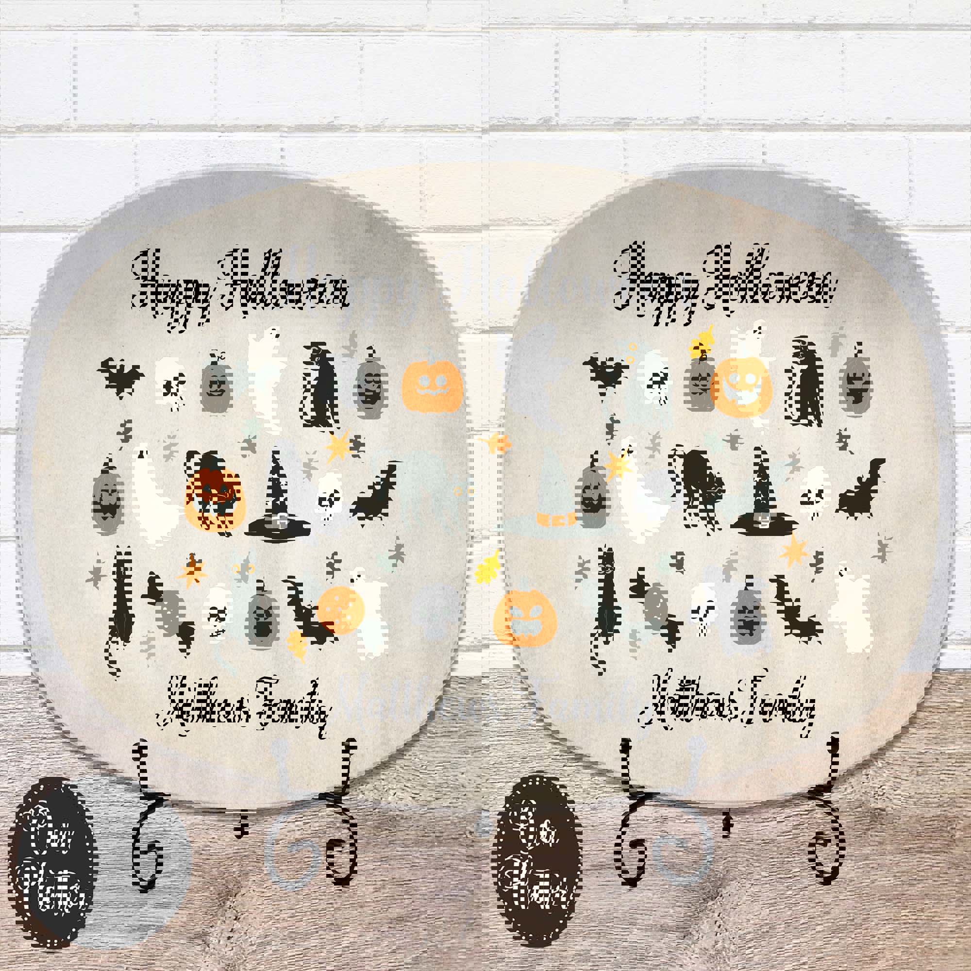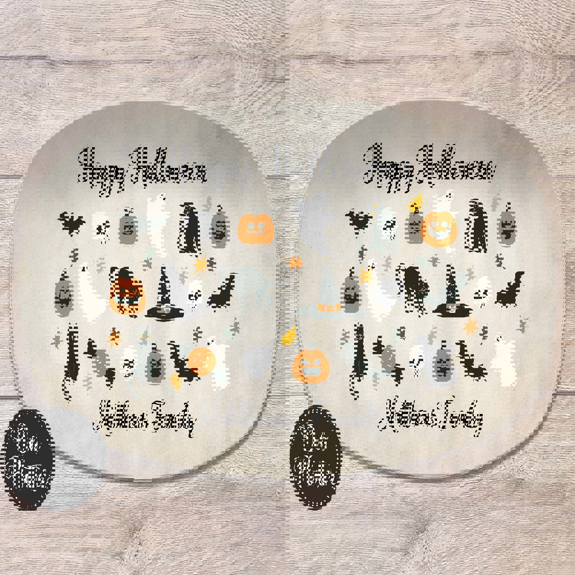 Halloween Personalized Serving Platter | Custom Fall Hosting Decor | Bats, Ghosts, Jack-O-Lantern, Black Cat & Skulls