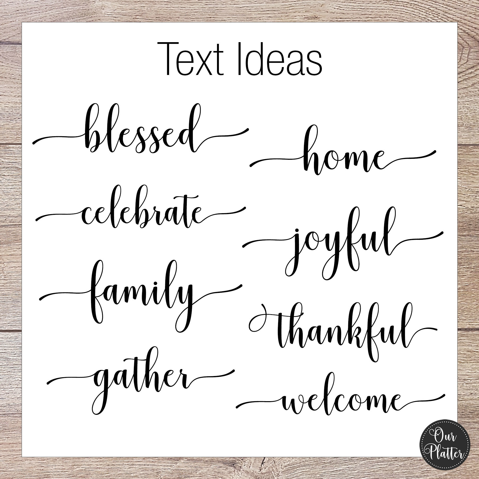We use our design expertise for the best placement of text and graphics on each platter based on your individual selections. Actual colors may vary due to monitor settings. Small imperfections reflect the hand-made and unique nature of the printing process. Design elements such as wood, glitter, metallic, are all faux printed designs.