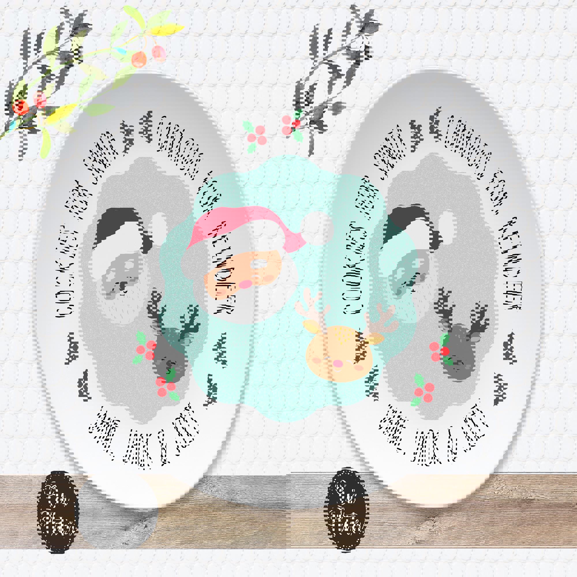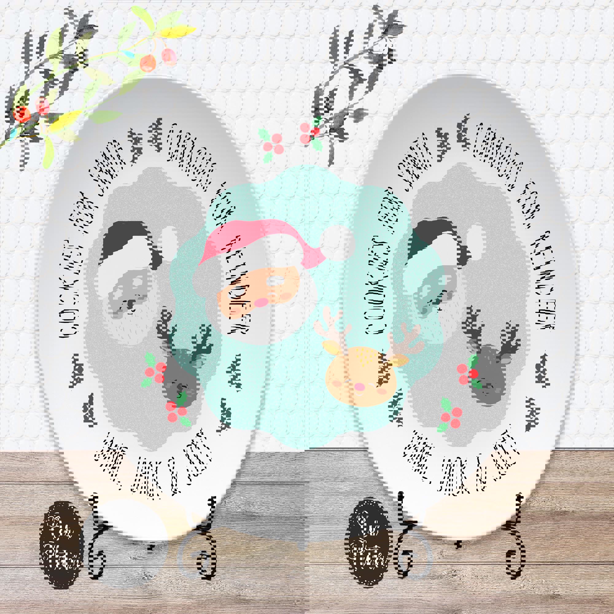 Create a cherished family tradition with this Cookies for Santa & Carrots for Reindeer plate. A festive way to leave out treats for Santa and his reindeer on Christmas Eve. Each plate is personalized with your family name or children’s names, making it a one-of-a-kind keepsake that brings joy and excitement year after year. Perfect for little ones eager to sprinkle a little magic before bedtime, this custom plate adds the sweetest touch to your holiday celebrations.
