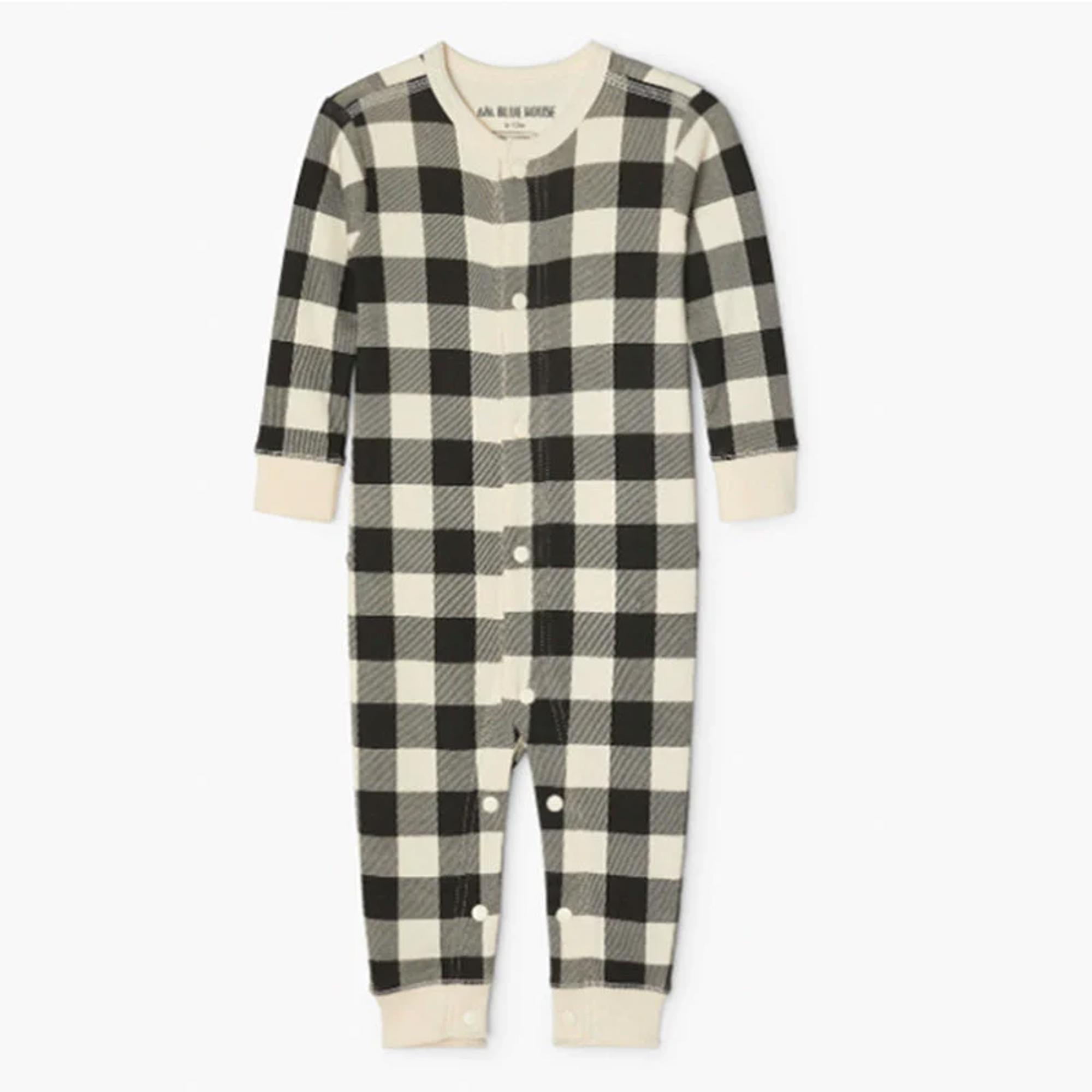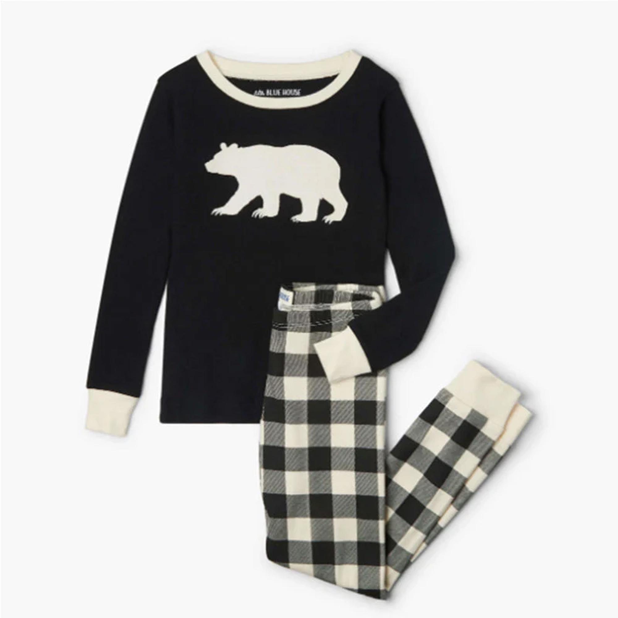 Black & Cream Plaid Bear Family Matching Pajamas