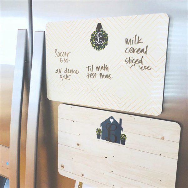 This is really cute but I had to push on it a few times to get the magnets to stick to the fridge and wish it was a little bigger. Update: I wanted to love this but it just doesn’t stay on my fridge very well. Every time I turn around it’s on the floor and when I put it back on I have to really push and almost bend it to stick.