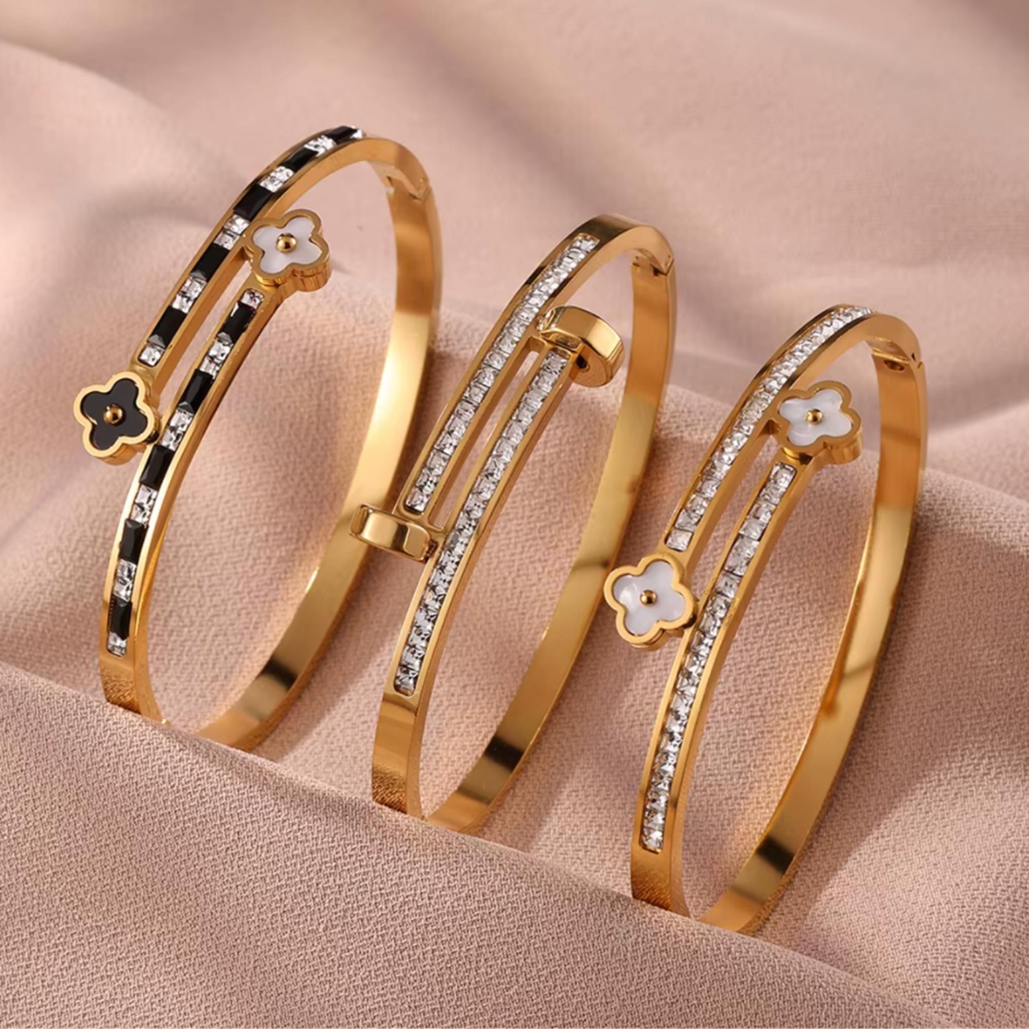 Clover Set of 3 Bangle Bracelets - Stainless Steel