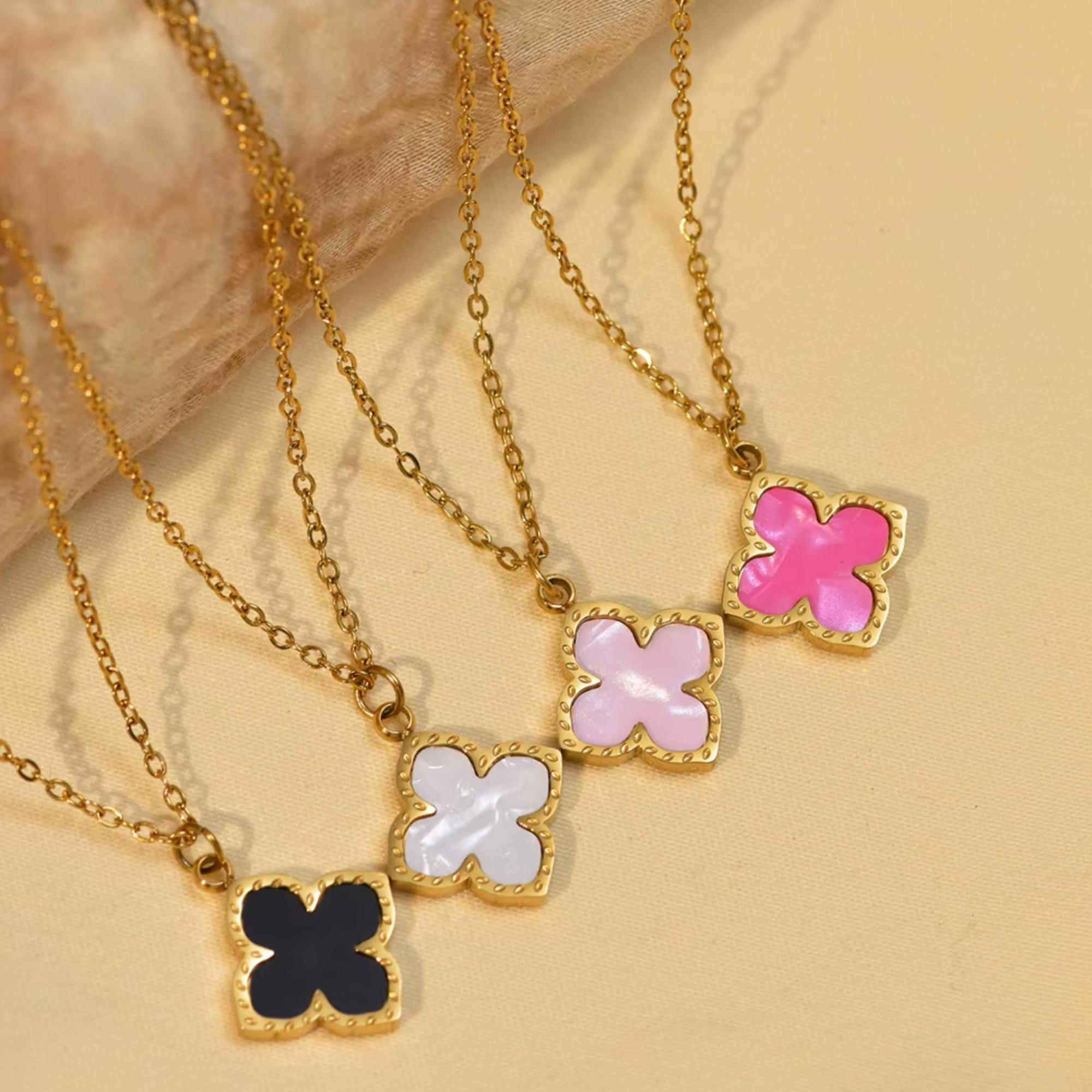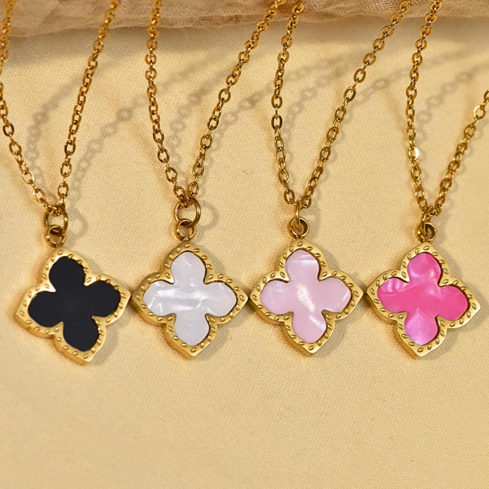 Colorful Clover Pendant Necklace - Stainless Steel