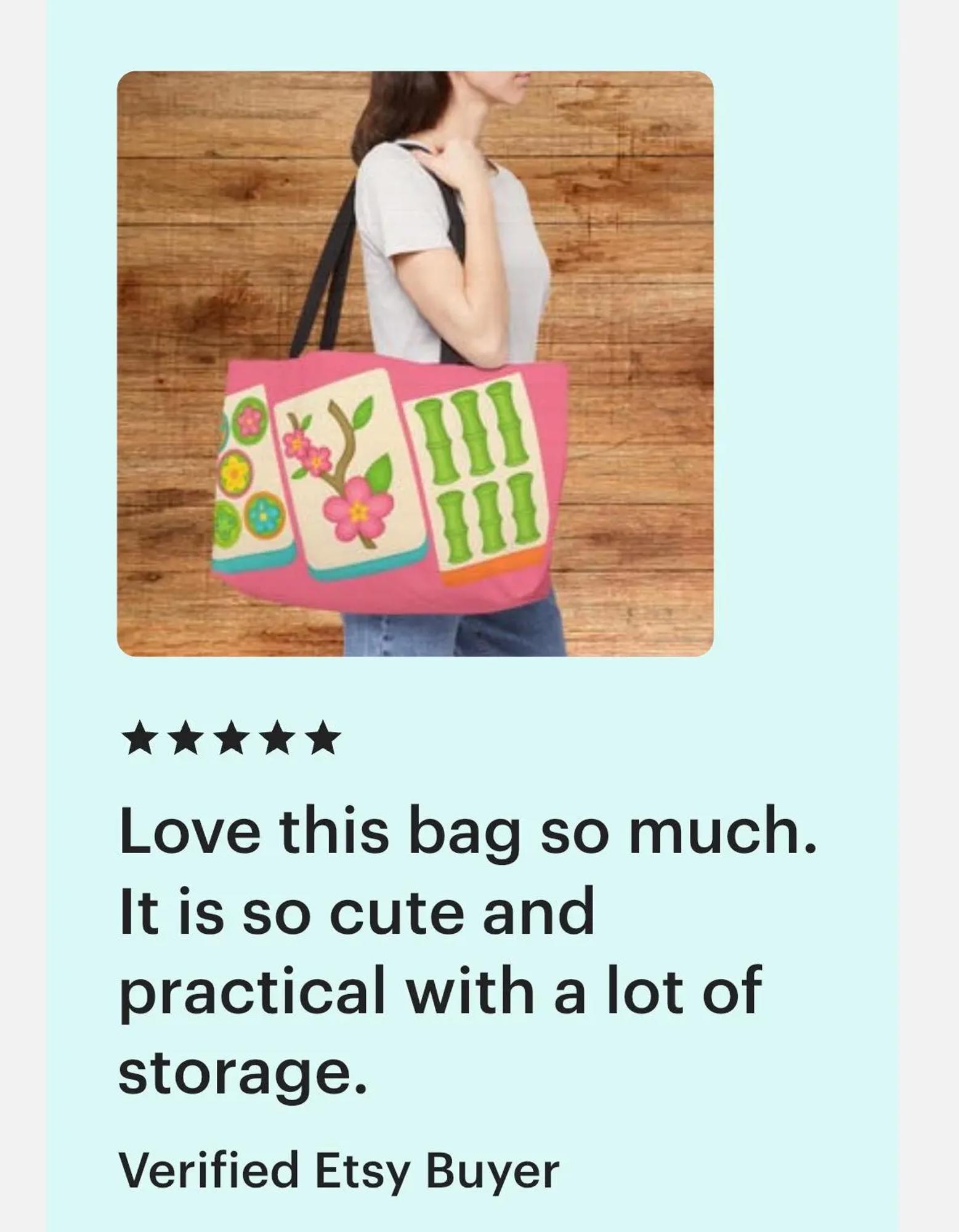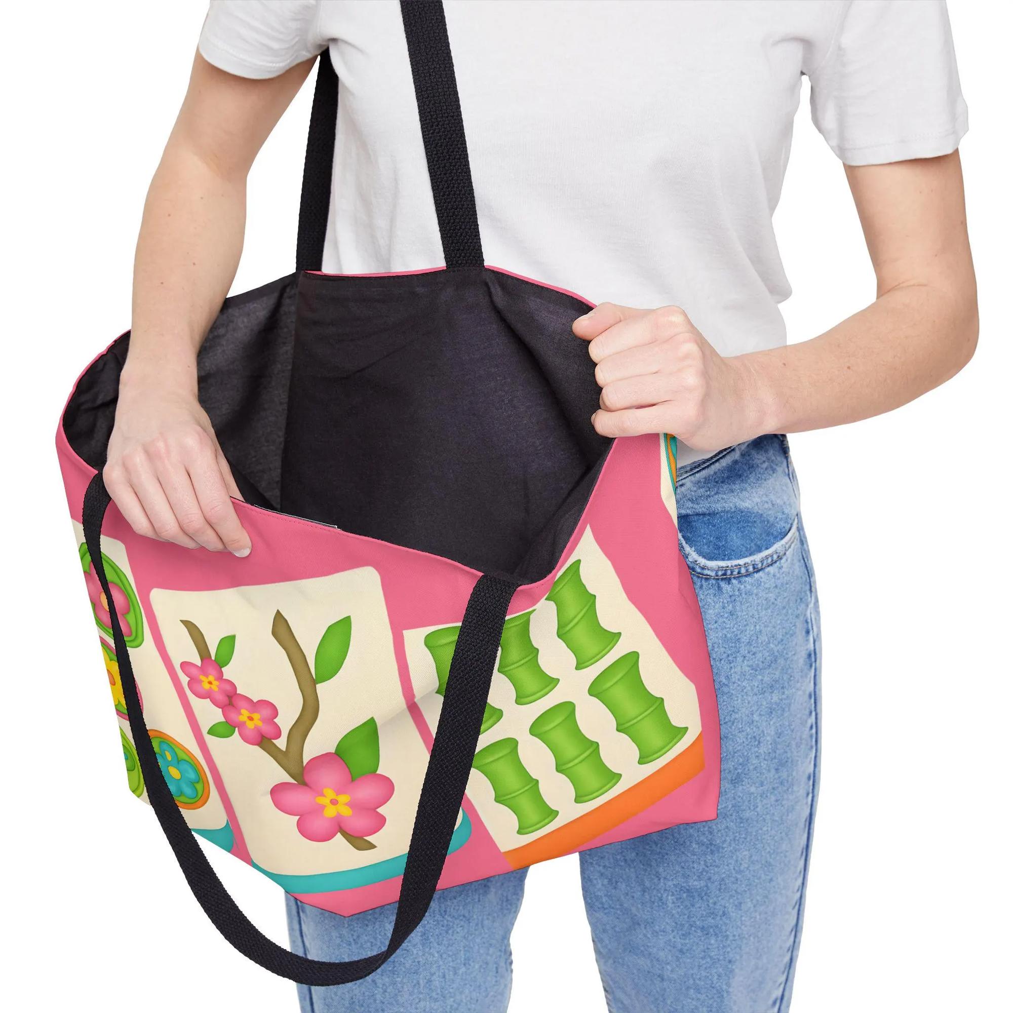 Lightweight but sturdy, this bag features a sleek t-bottom shape and all-over vibrant design—because your love of Mahjong deserves more than a boring plastic tote.