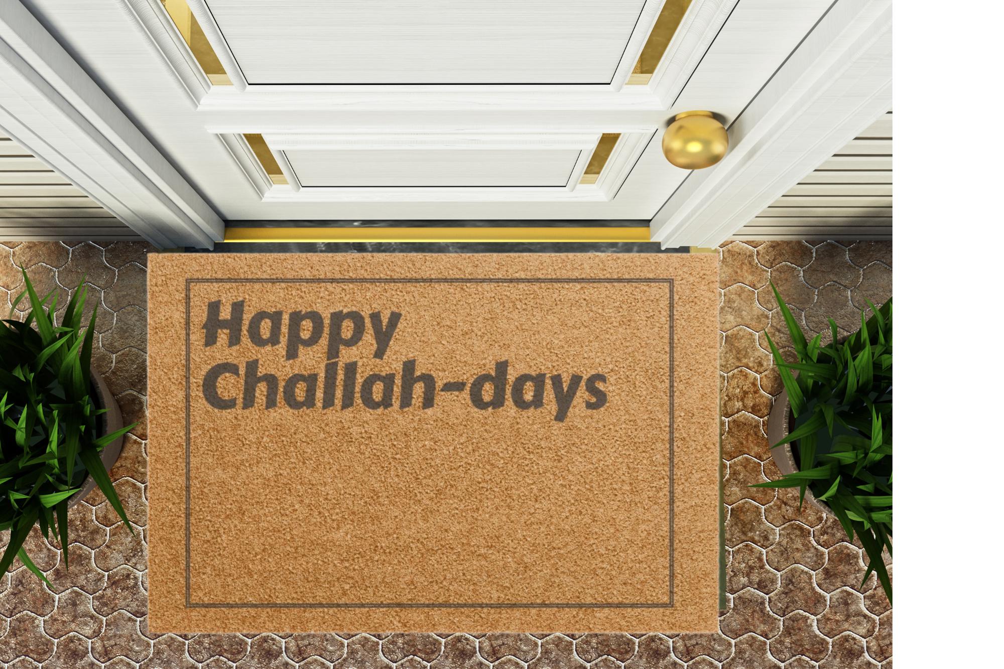 Bring on the latkes, dreidels, and a sprinkle of challah-day humor! This festive doormat greets guests with a playful “Happy Challah-days” pun—perfect for Hanukkah hosting or Jewish holiday celebrations with a twist of fun.