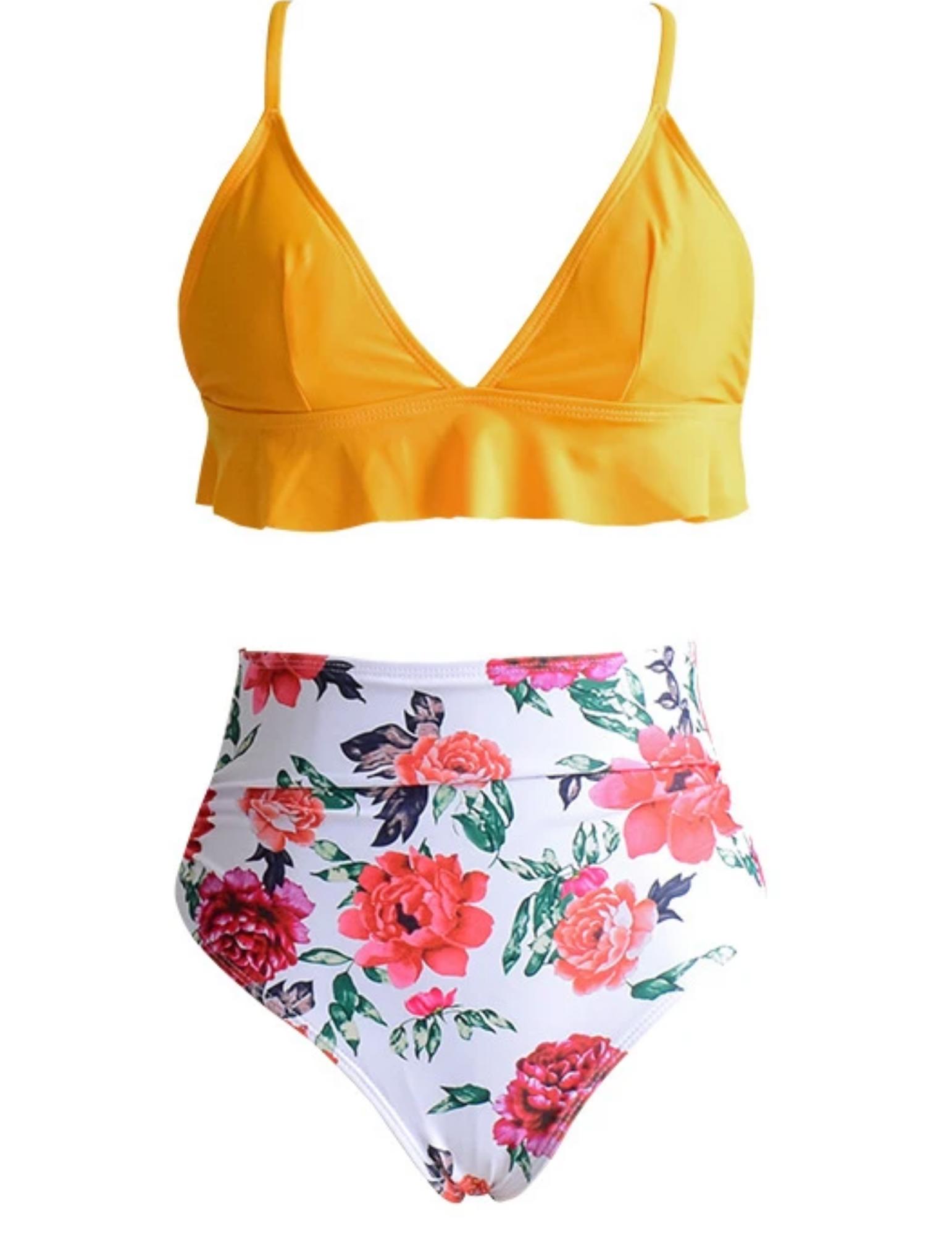 Floral High Waisted Women RUFFLE BIKINI Set Swimsuit