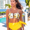 The perfect combination of color! The Bikini set laces up at the back and features strappy details at the front. The high-waisted bottom features super cute waist ties. Can be tied in the front or back!