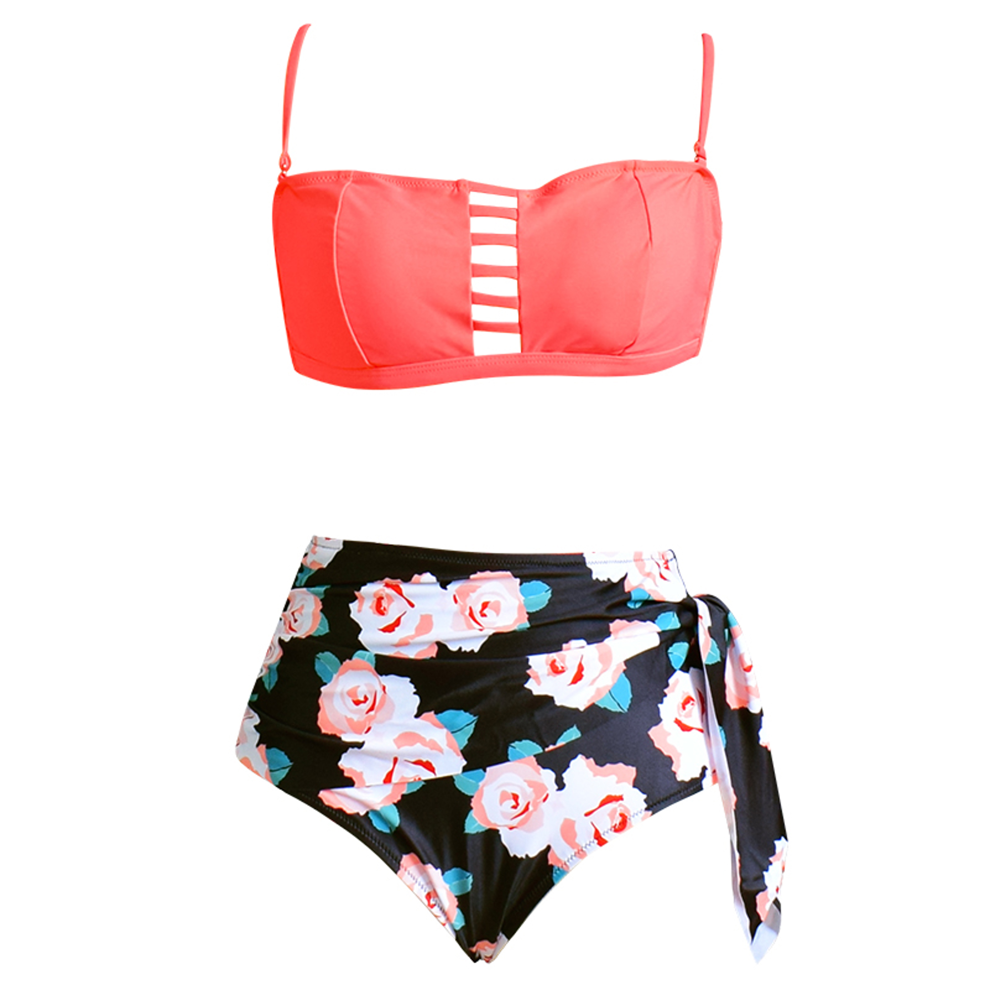 Women Strappy High-waisted 2 Piece Bikini Swimsuits