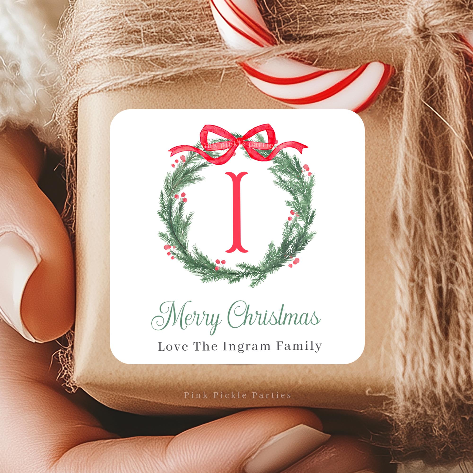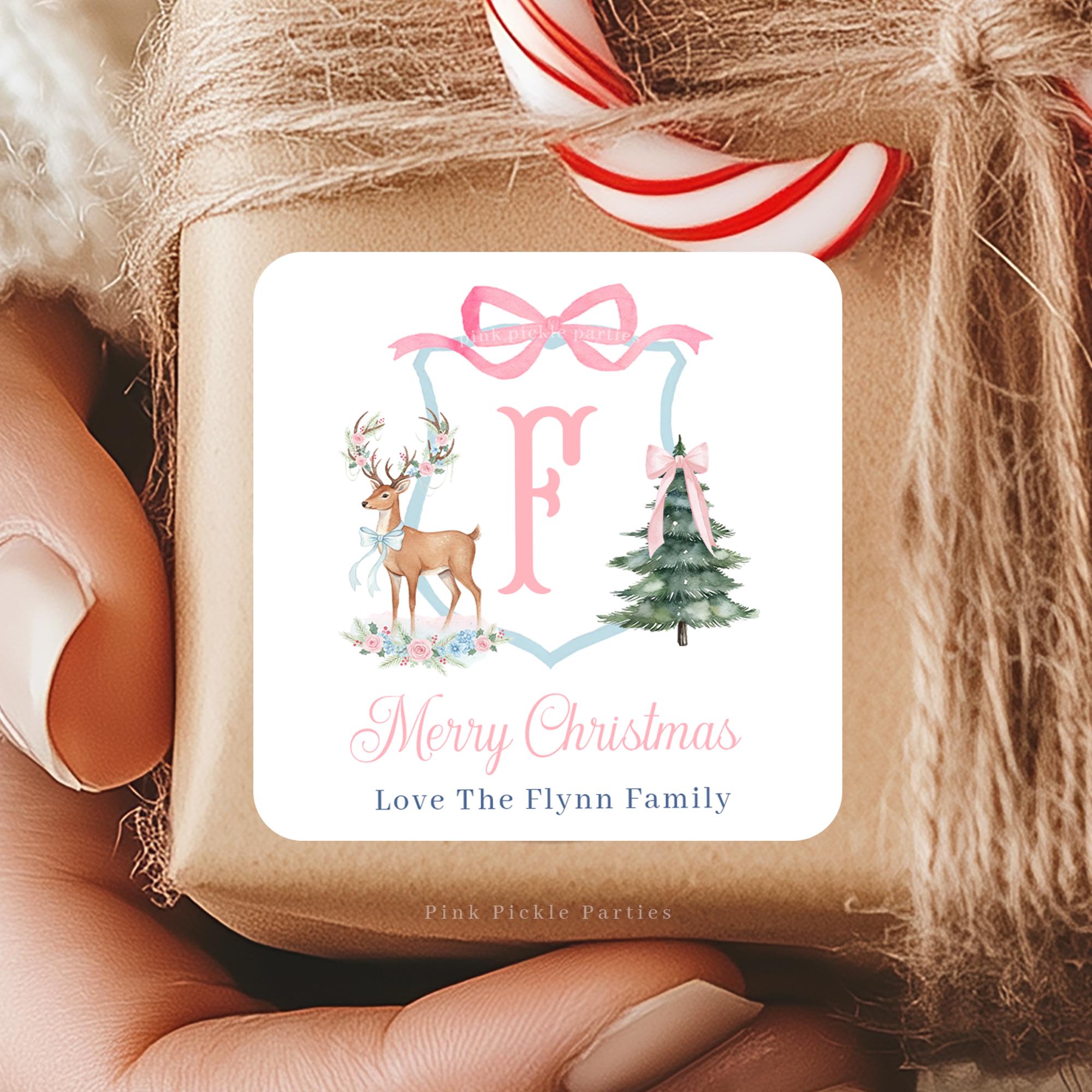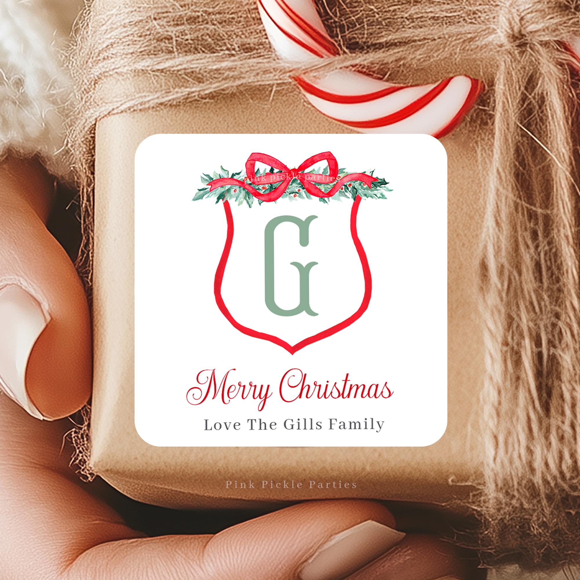 Family Crest Personalized Christmas Gift Stickers | Preppy Christmas Labels