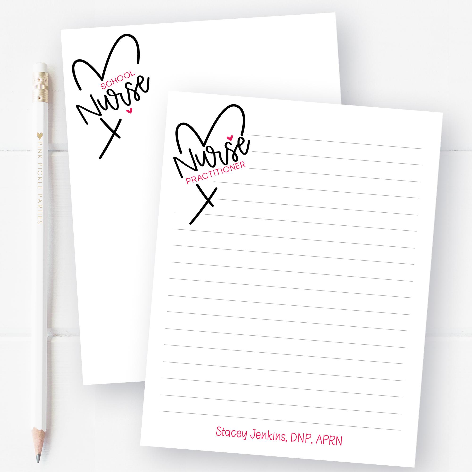 Personalized Nurse Notepad | Nurse Heart Stationery | Nurse Appreciation Week Gift