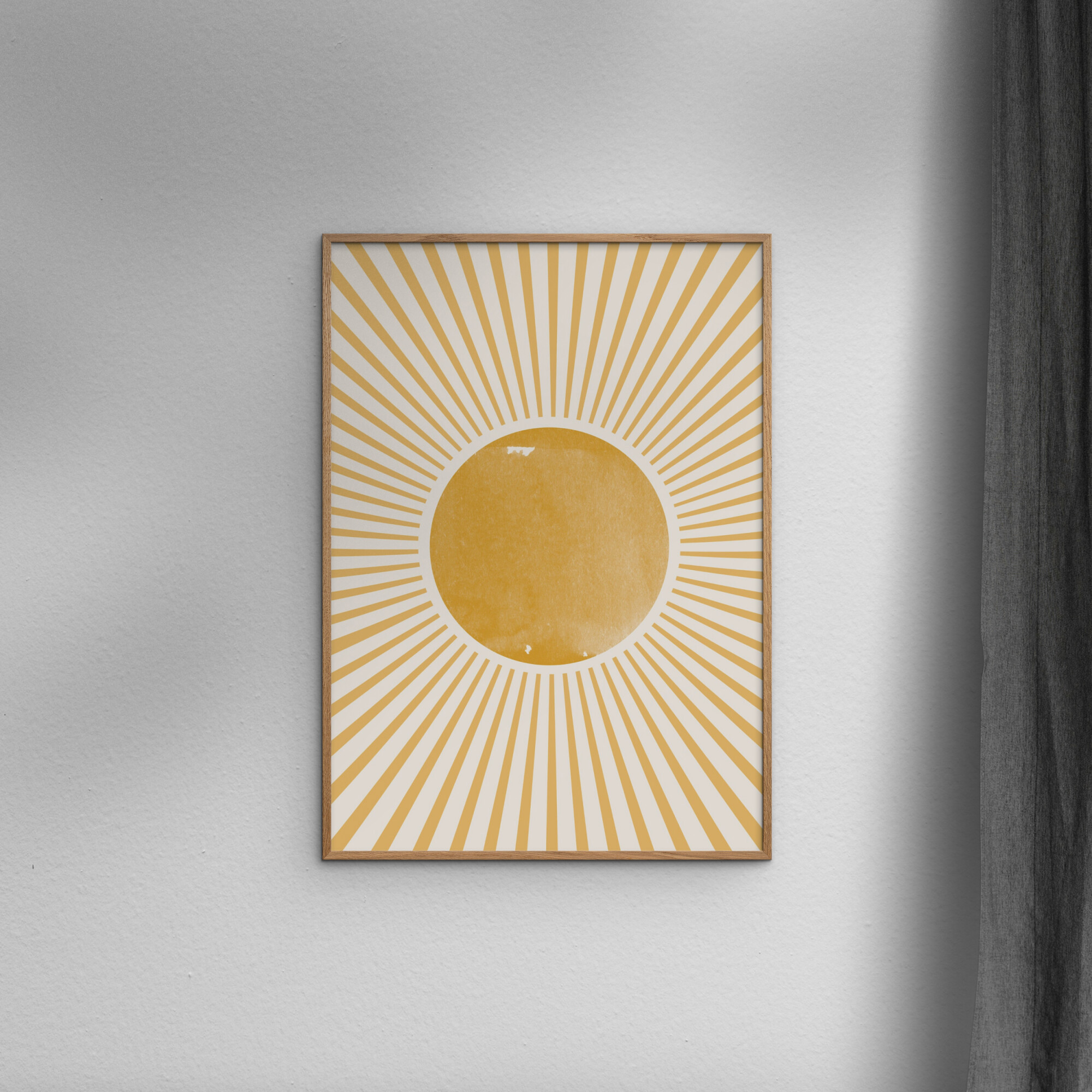 Frame not included. Experience the serene beauty of a radiant sun captured in this stunning poster. Its vibrant hues and captivating design bring warmth and tranquility to any space, making it a perfect addition for those who appreciate nature's splendor and seek a touch of sunshine indoors.