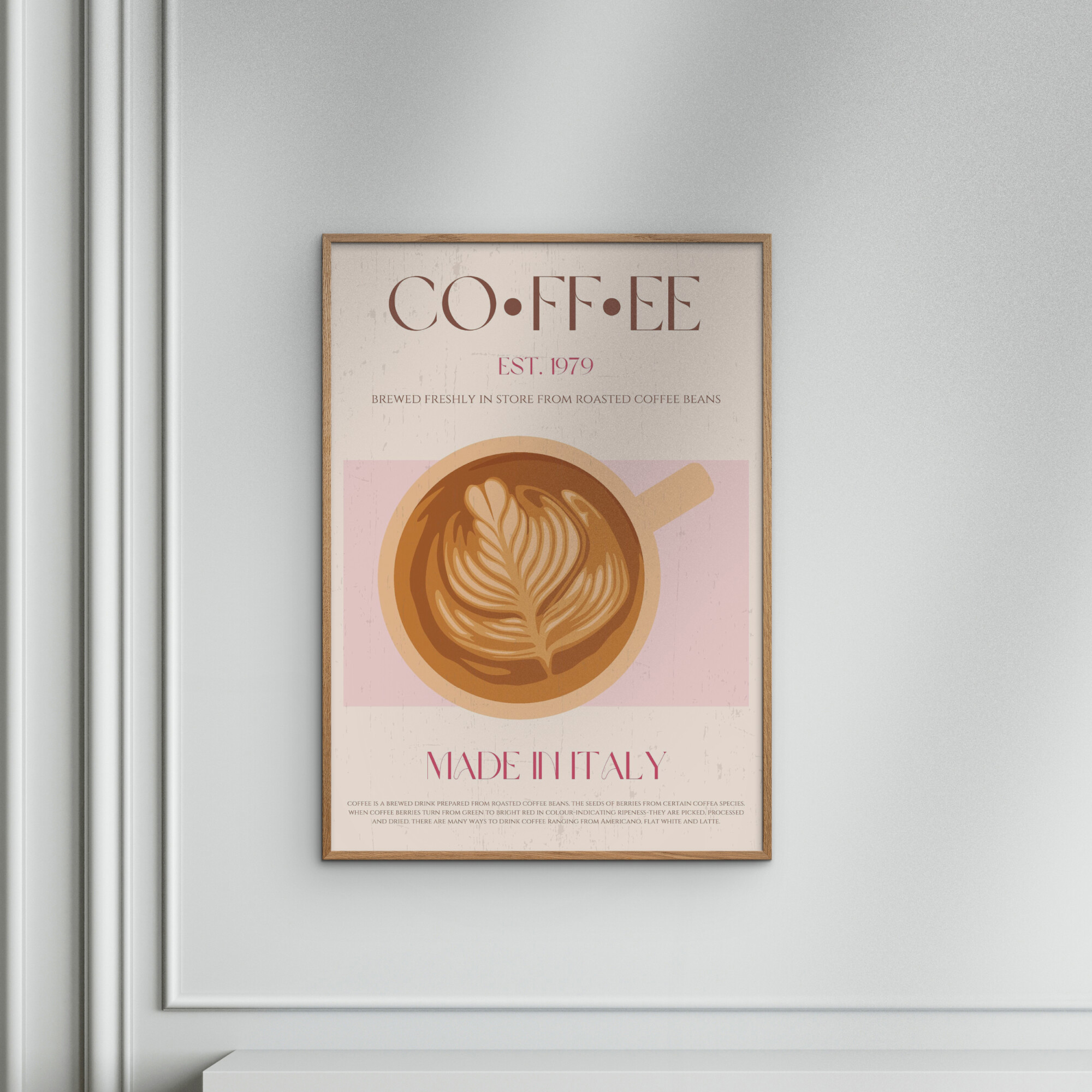 Frame not included. Indulge in the rich aroma and warmth of a freshly brewed cup of coffee, beautifully captured in this artistic poster. Perfect for coffee enthusiasts, it adds a touch of elegance and coziness to any space, celebrating the timeless allure of your favorite morning ritual.
