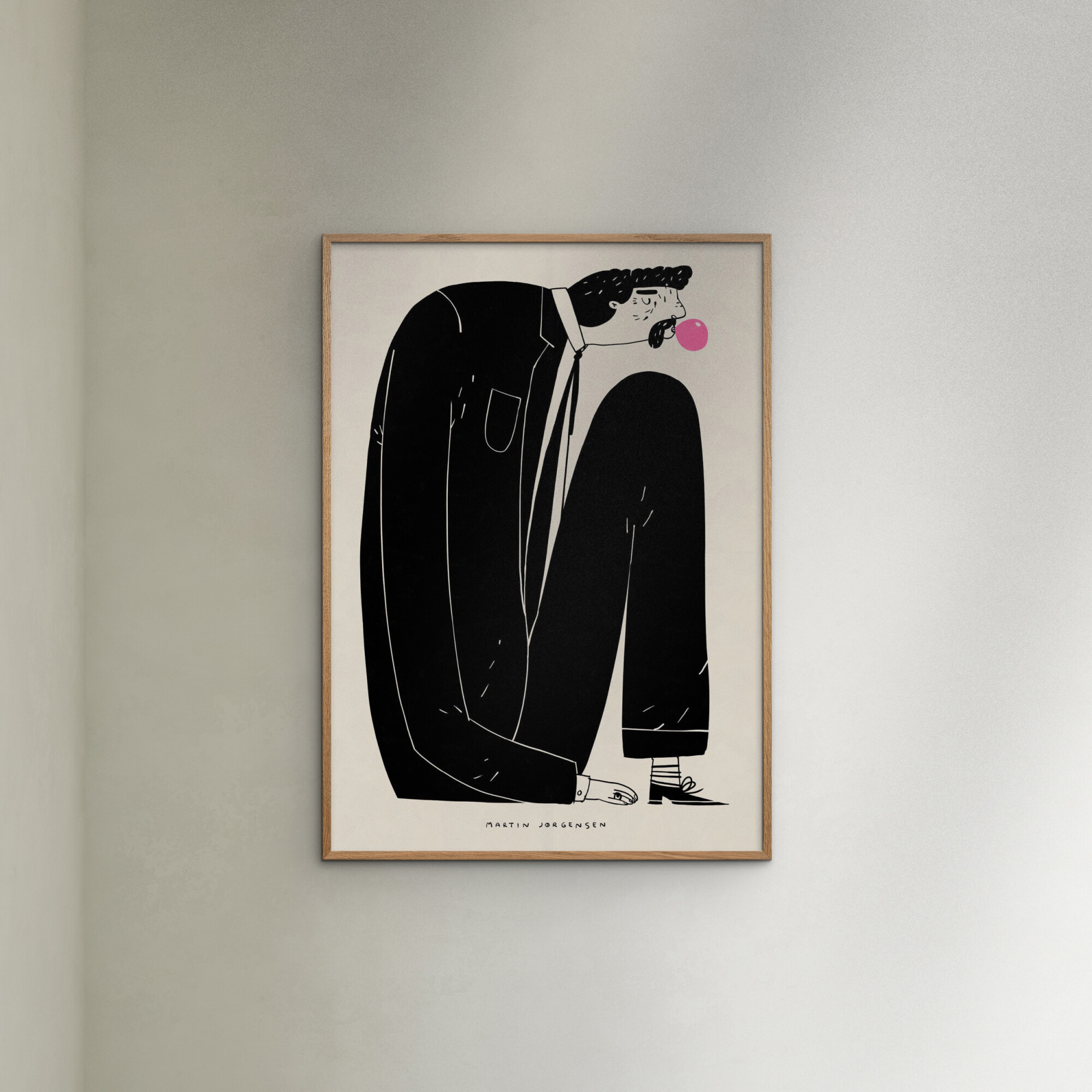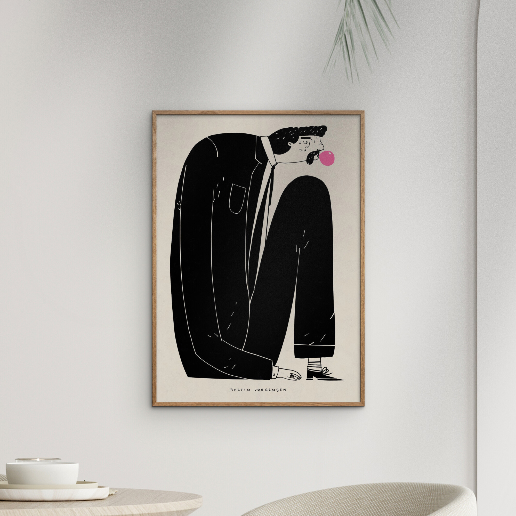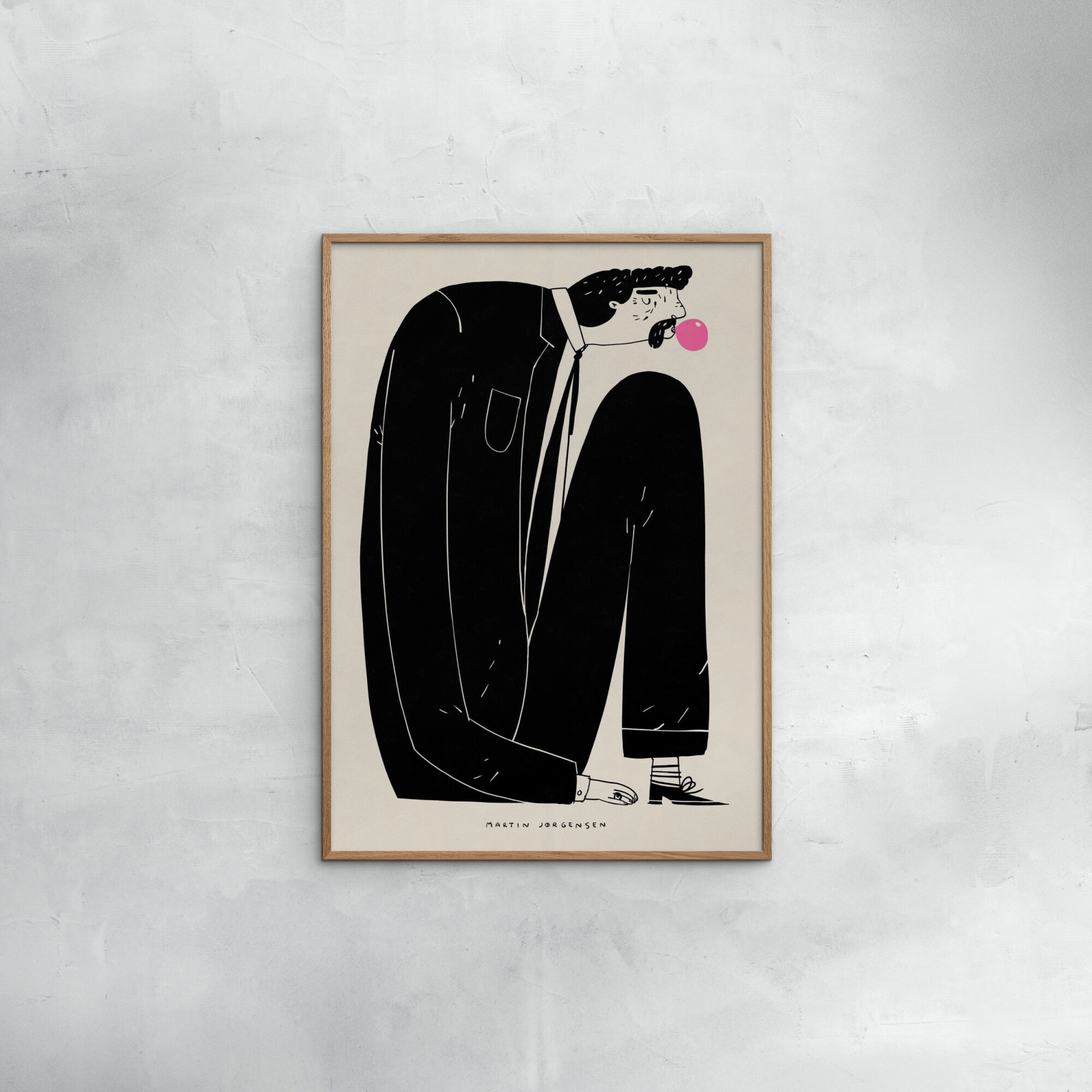 Frame not included. Discover a striking monochrome poster featuring a unique gum man, where vibrant gum hues contrast against a minimalist backdrop. This captivating artwork blends surrealism with simplicity, making it an intriguing addition to any modern space. Perfect for art enthusiasts seeking a conversation starter with a touch of whimsy.