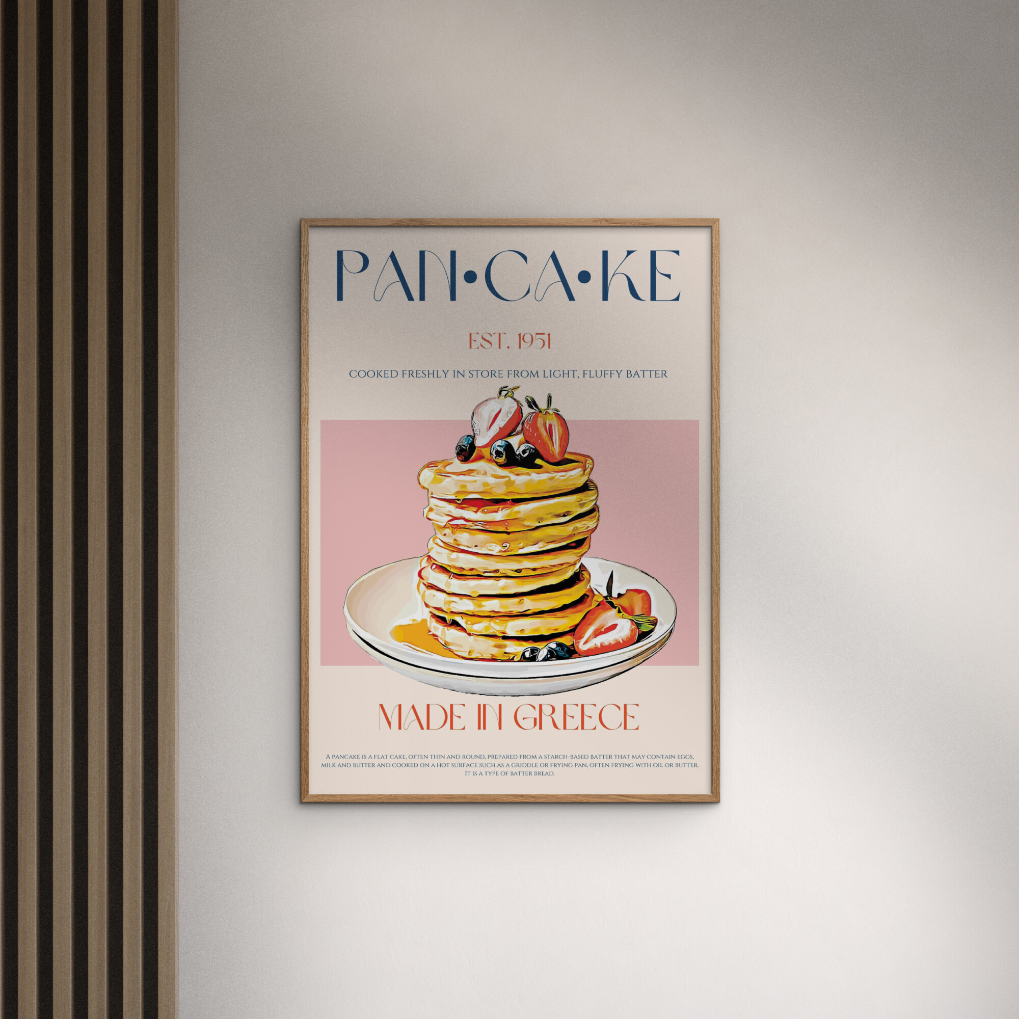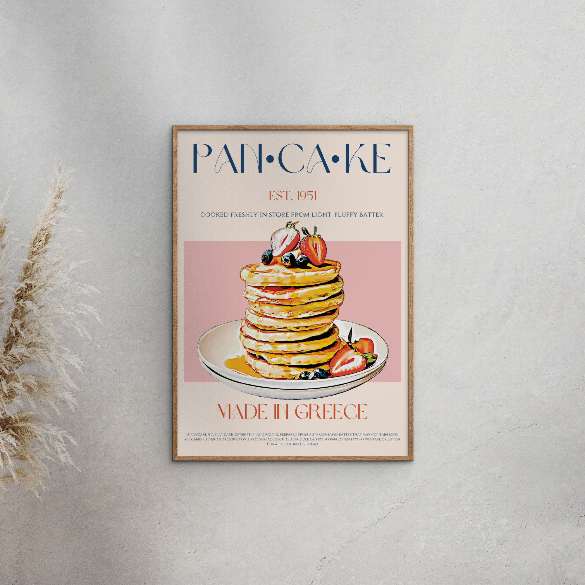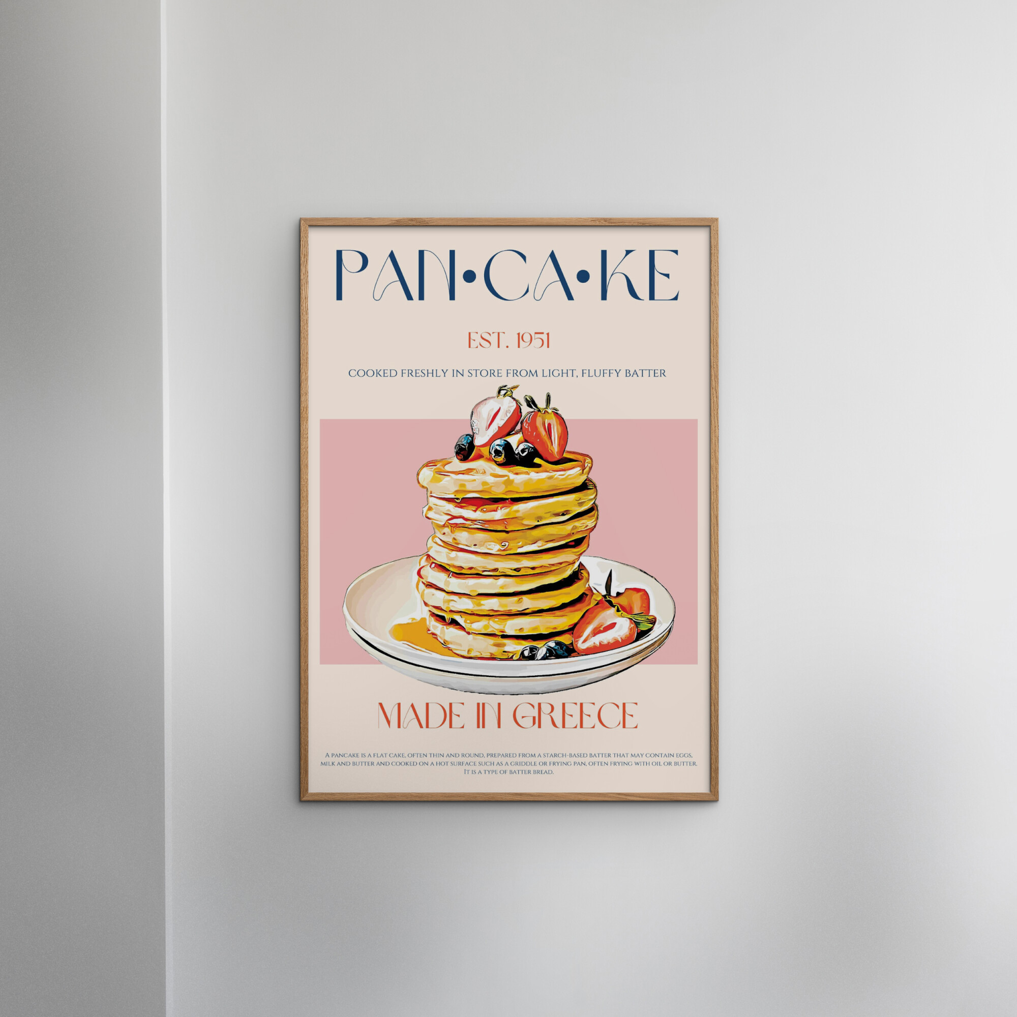 Frame not included. Indulge in the whimsical charm of Nazma Khokhar's Pancake Poster, a delightful blend of vibrant colors and playful design. Perfect for breakfast lovers, this artwork captures the joy of morning rituals, adding a touch of warmth and creativity to any kitchen or dining space.