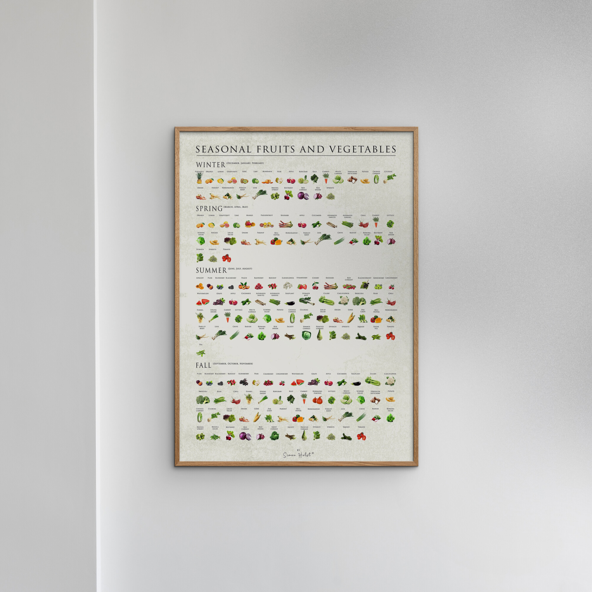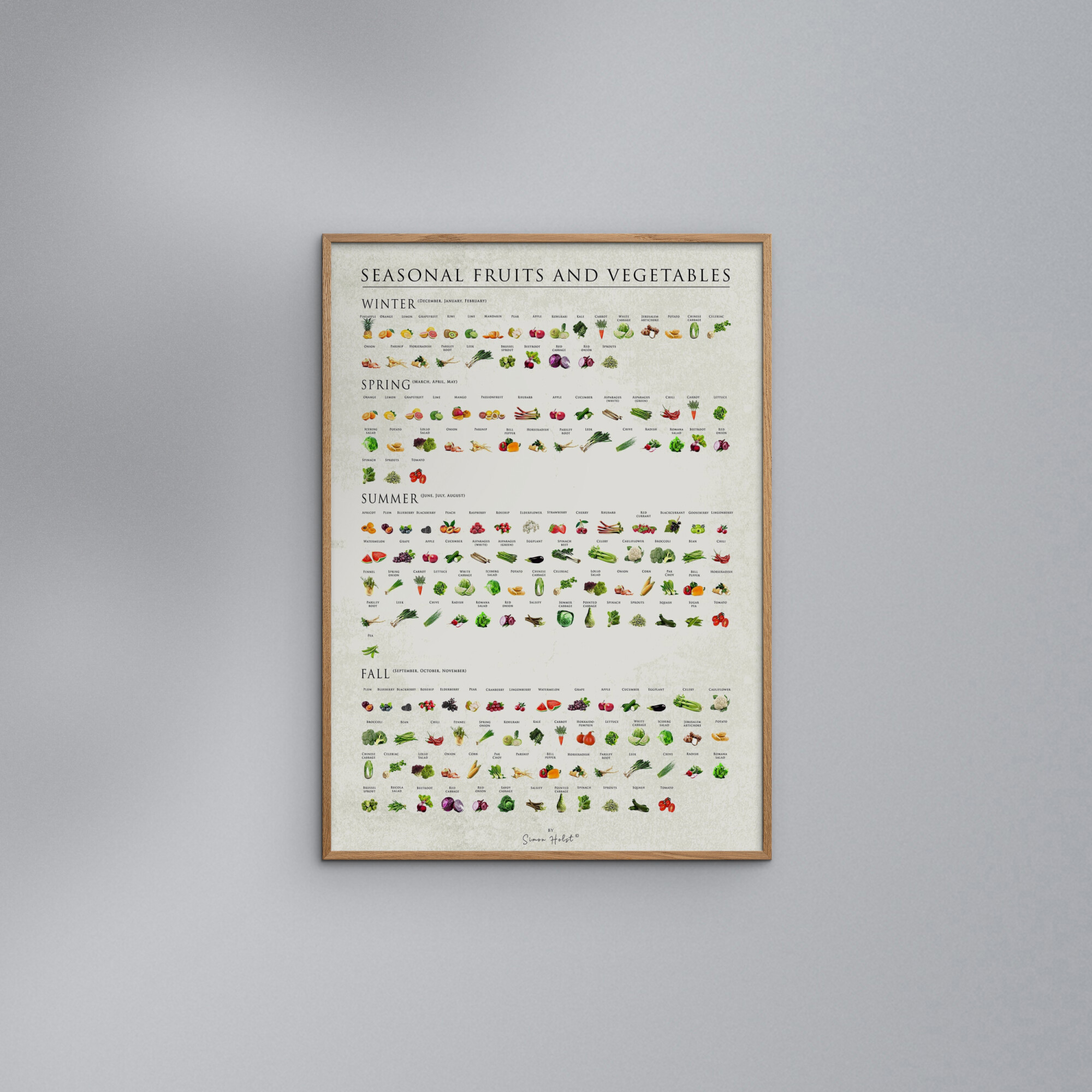Frame not included. Discover the vibrant world of seasonal produce with Simon Holst's beautifully illustrated poster. Featuring a curated selection of fruits and vegetables, this artwork celebrates nature's bounty, inspiring healthy eating and sustainable choices. Perfect for kitchens or dining spaces, it serves as a delightful reminder of each season's freshest offerings.