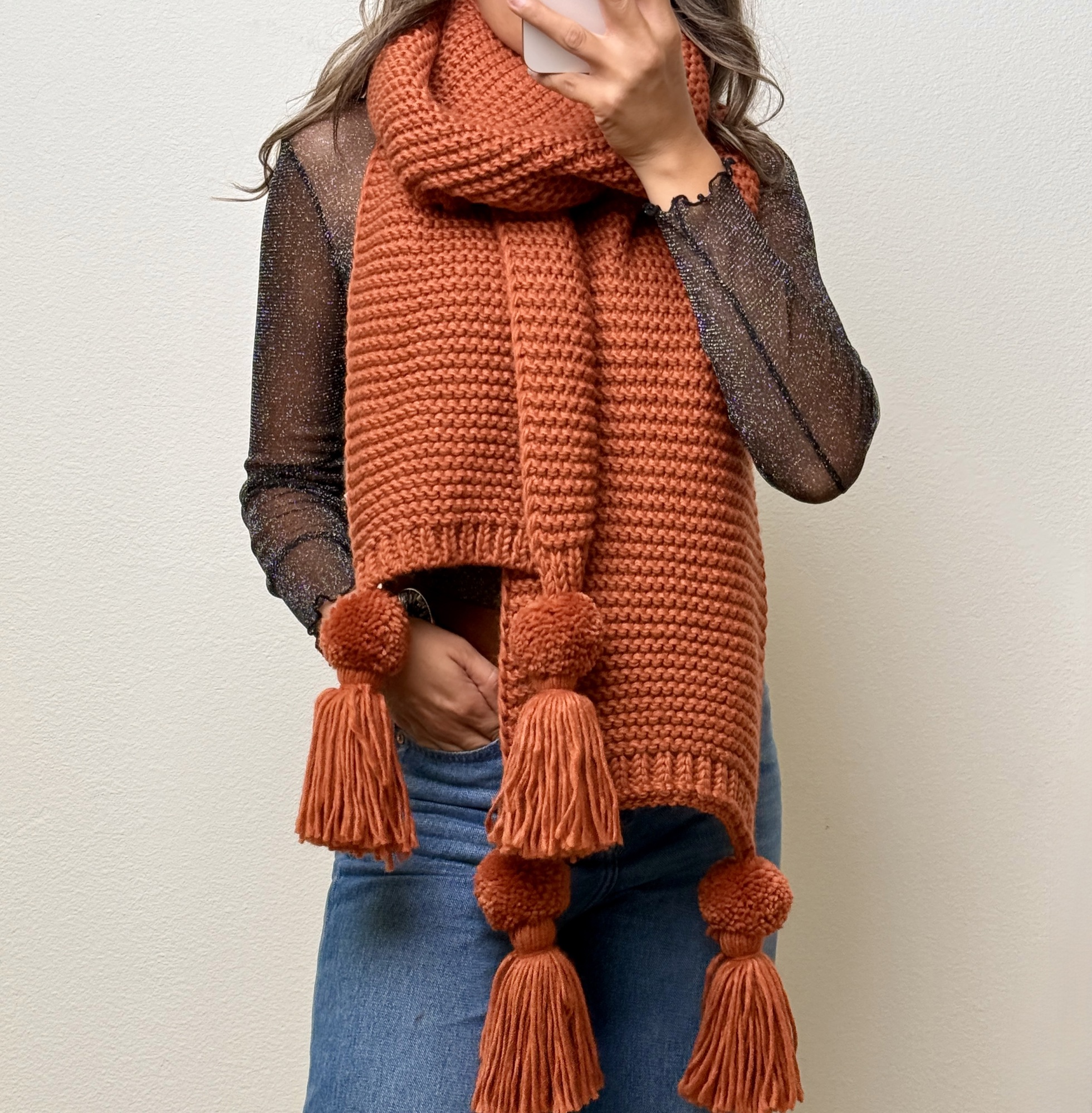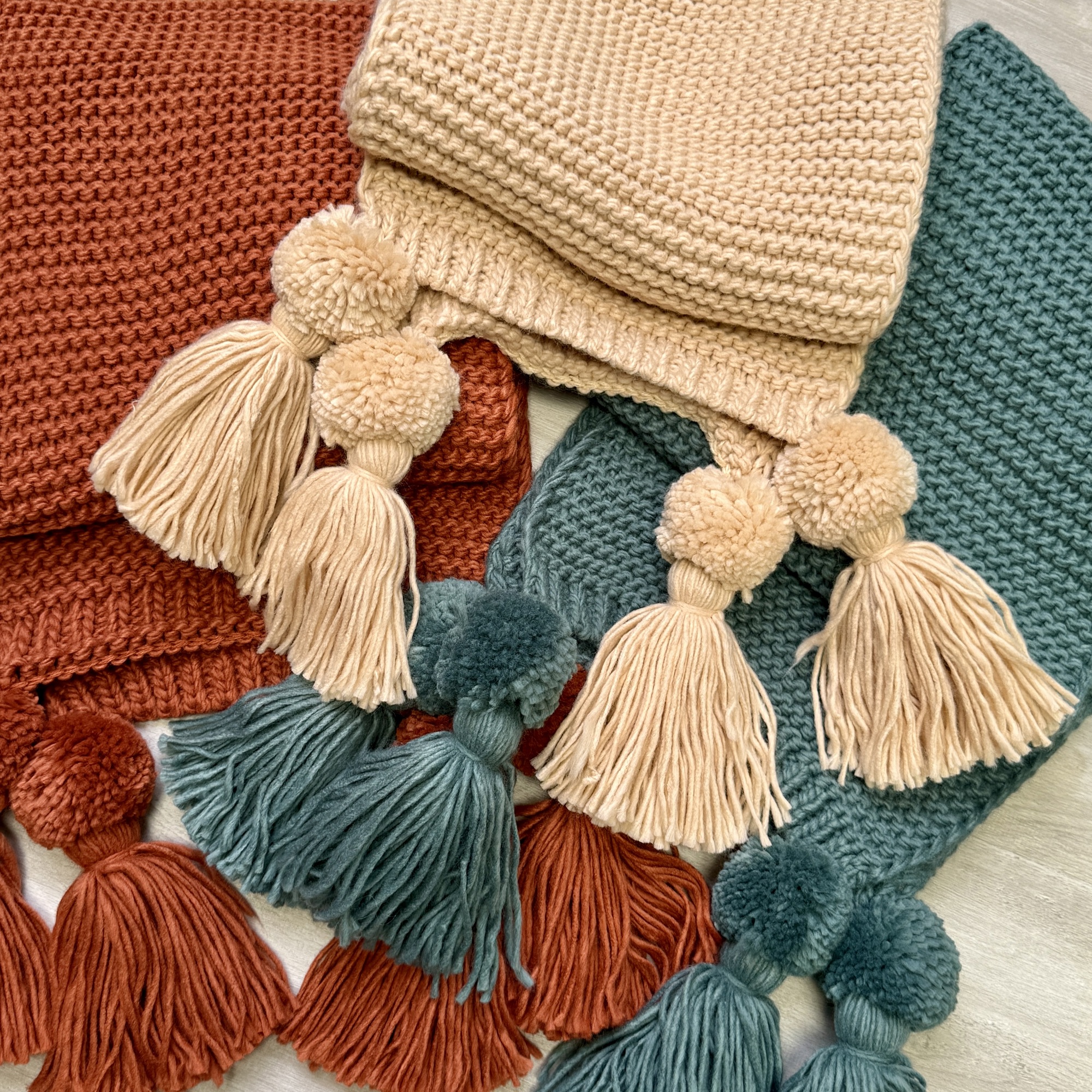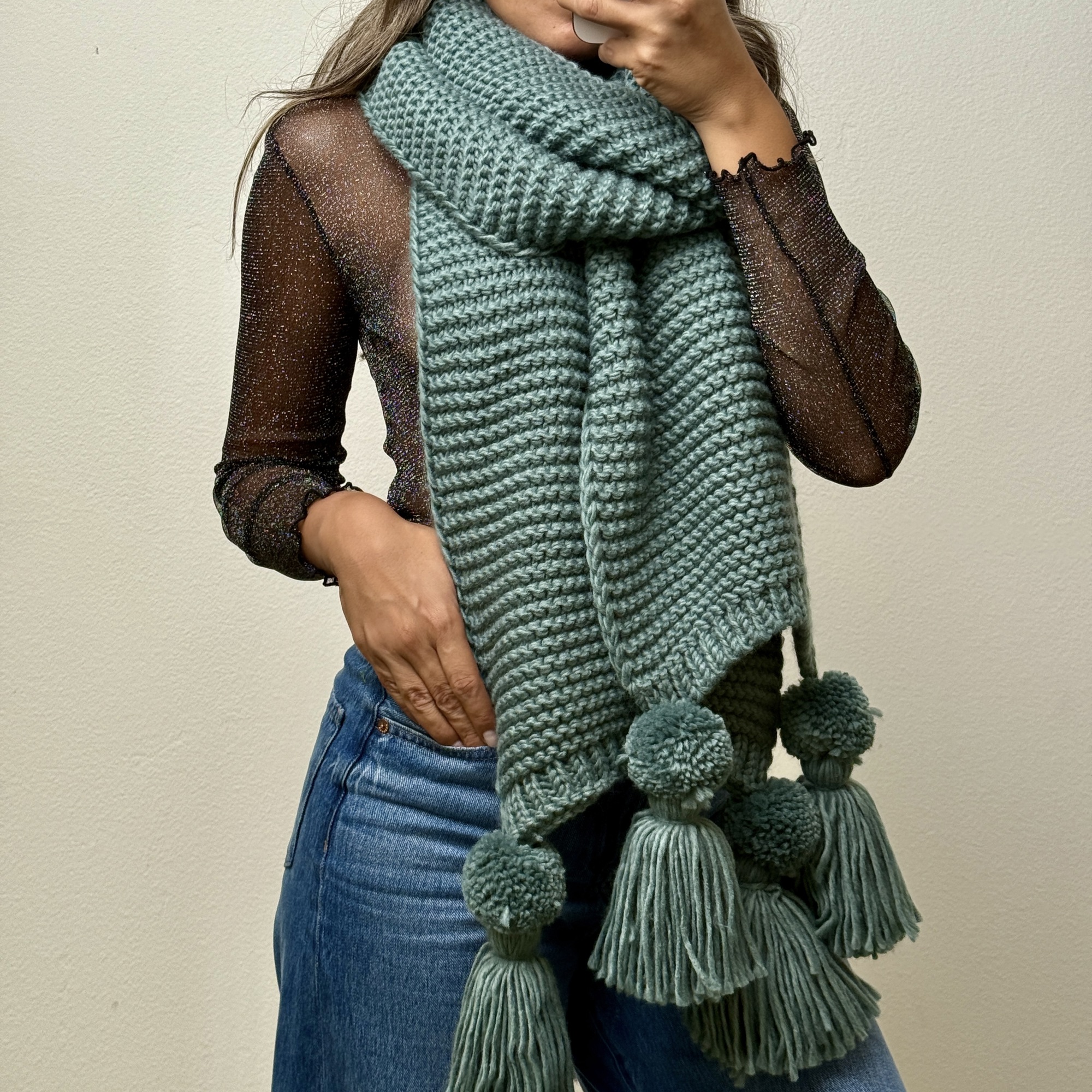 Snuggle up in style with the Alba Huge Knitted Pom Tassel Scarf! This oversized scarf combines plush warmth with playful pom tassels, making it the perfect accessory to brighten any chilly day. Its generous size lets you wrap up cozy comfort while adding a fun, whimsical touch to your outfit. Stay warm, look fabulous!