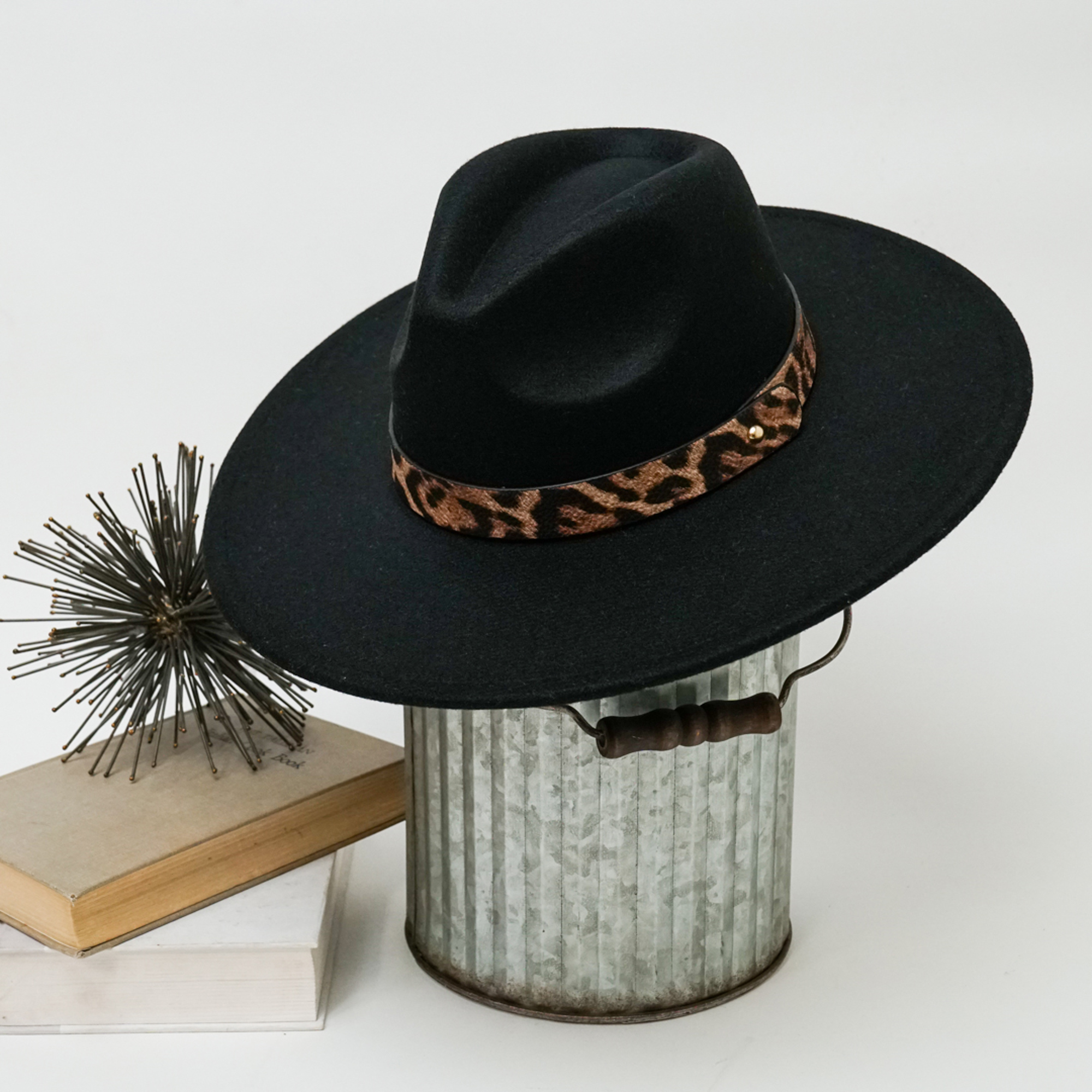 Alexia Fedora Hat – Wide Brim with Animal Print Strap