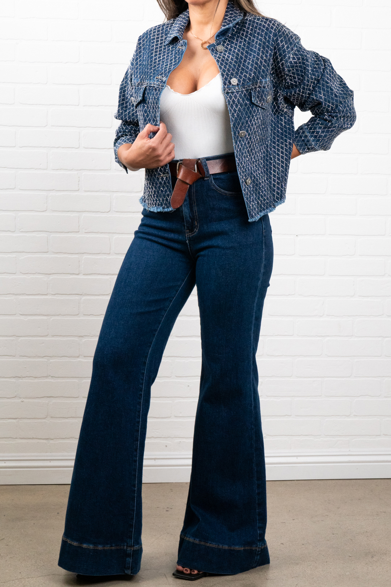 Get ready to dazzle in this fun rhinestone crop jacket that's pure personality. Covered in eye-catching sparkles, this piece transforms any outfit into a show-stopping look.