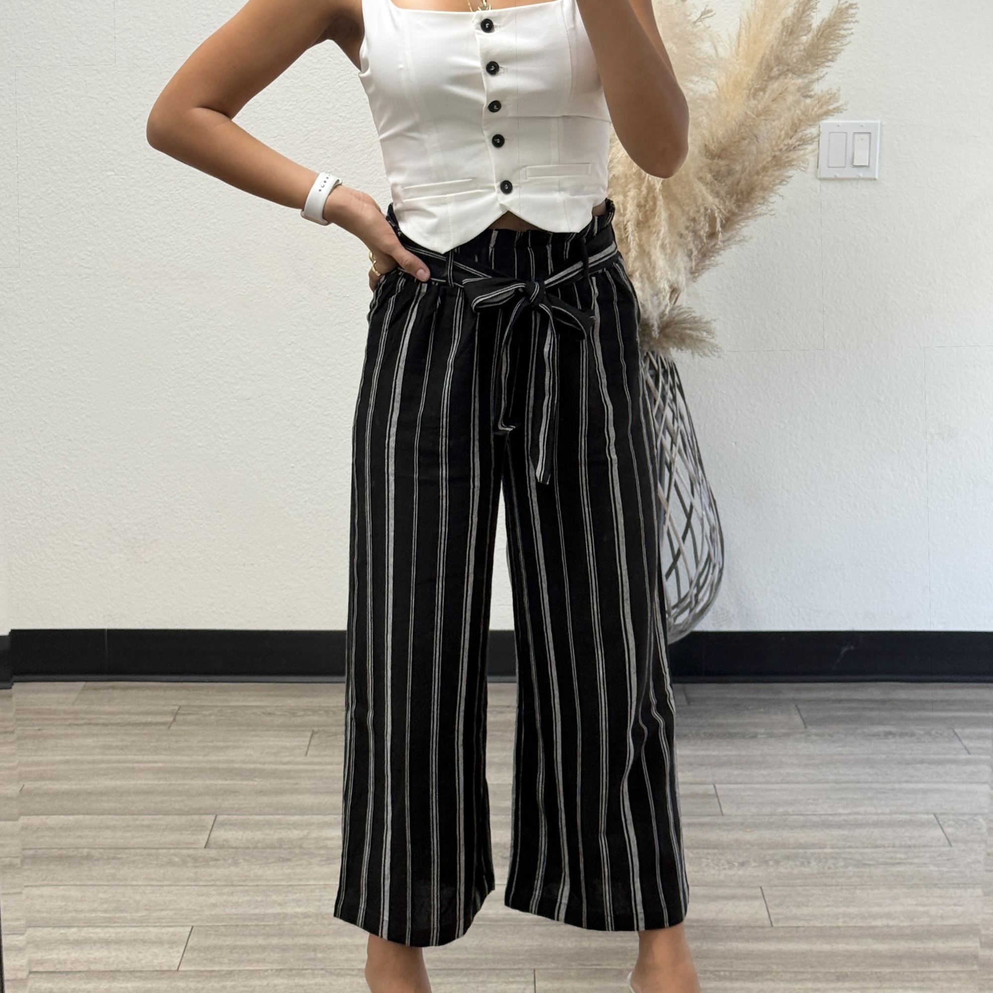 Step into style with the Loli Cropped Pants, featuring a fun stripped pattern that adds a playful twist to your outfit. These cropped pants offer a comfy fit with just the right amount of flair.