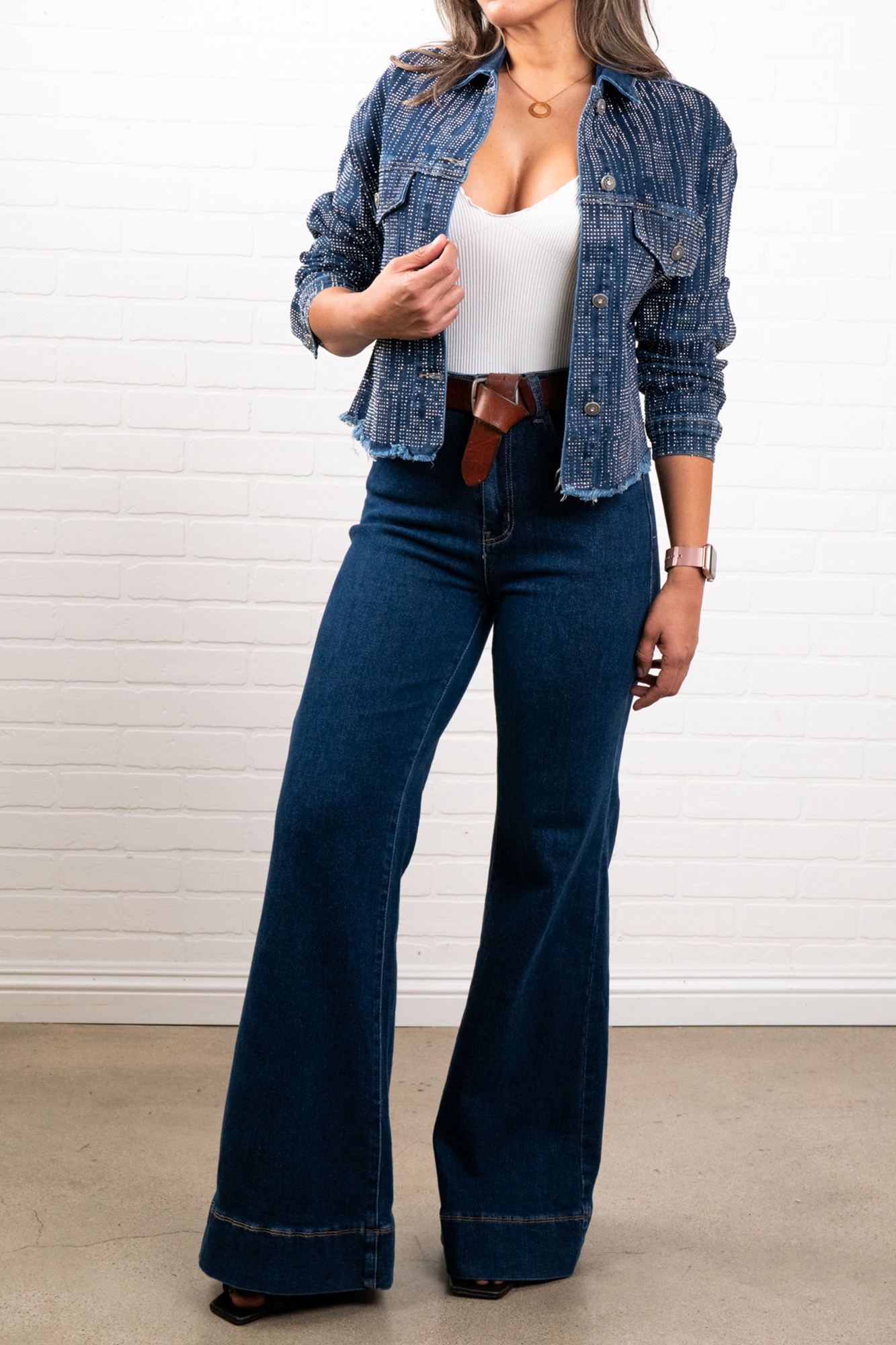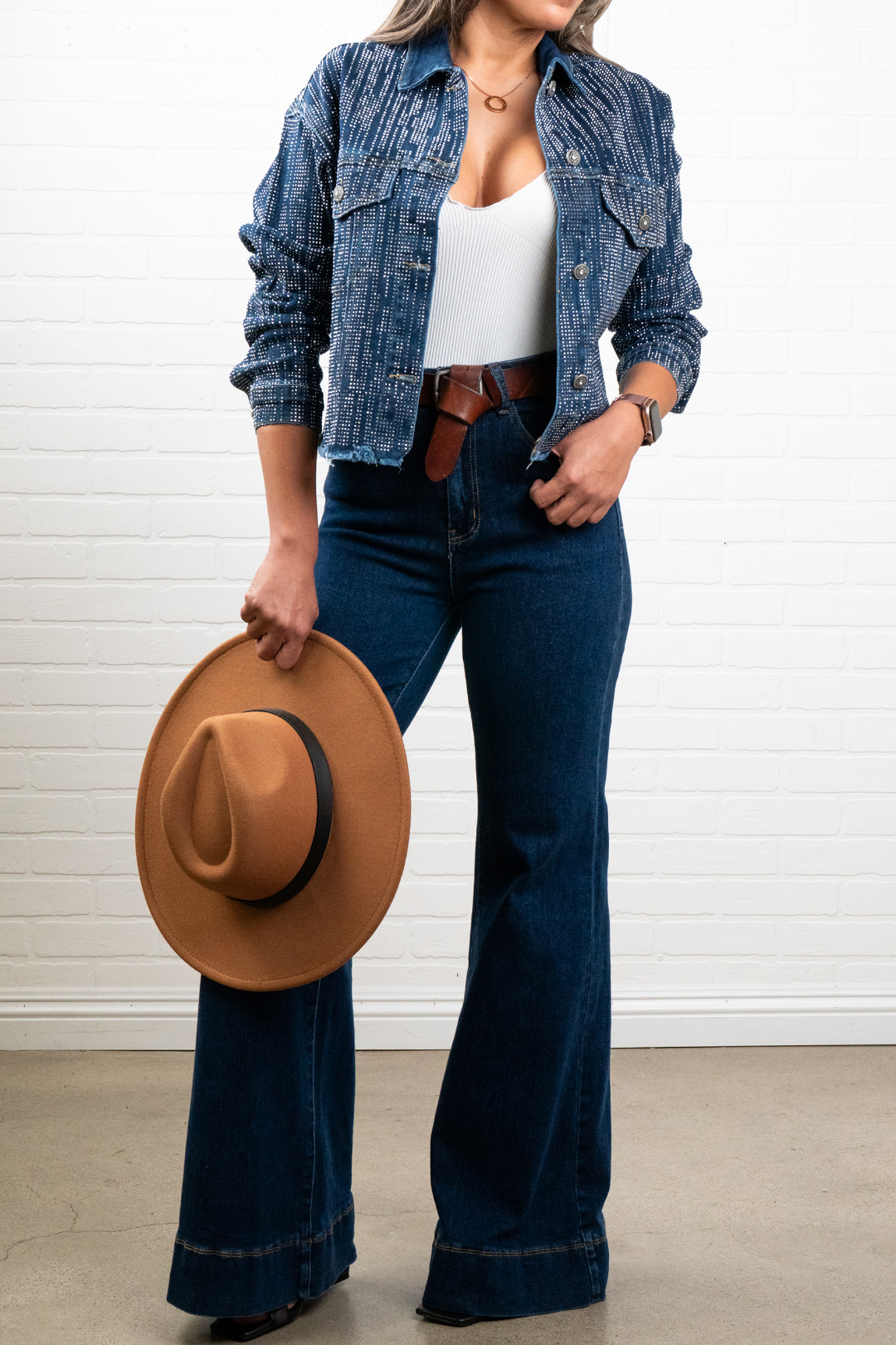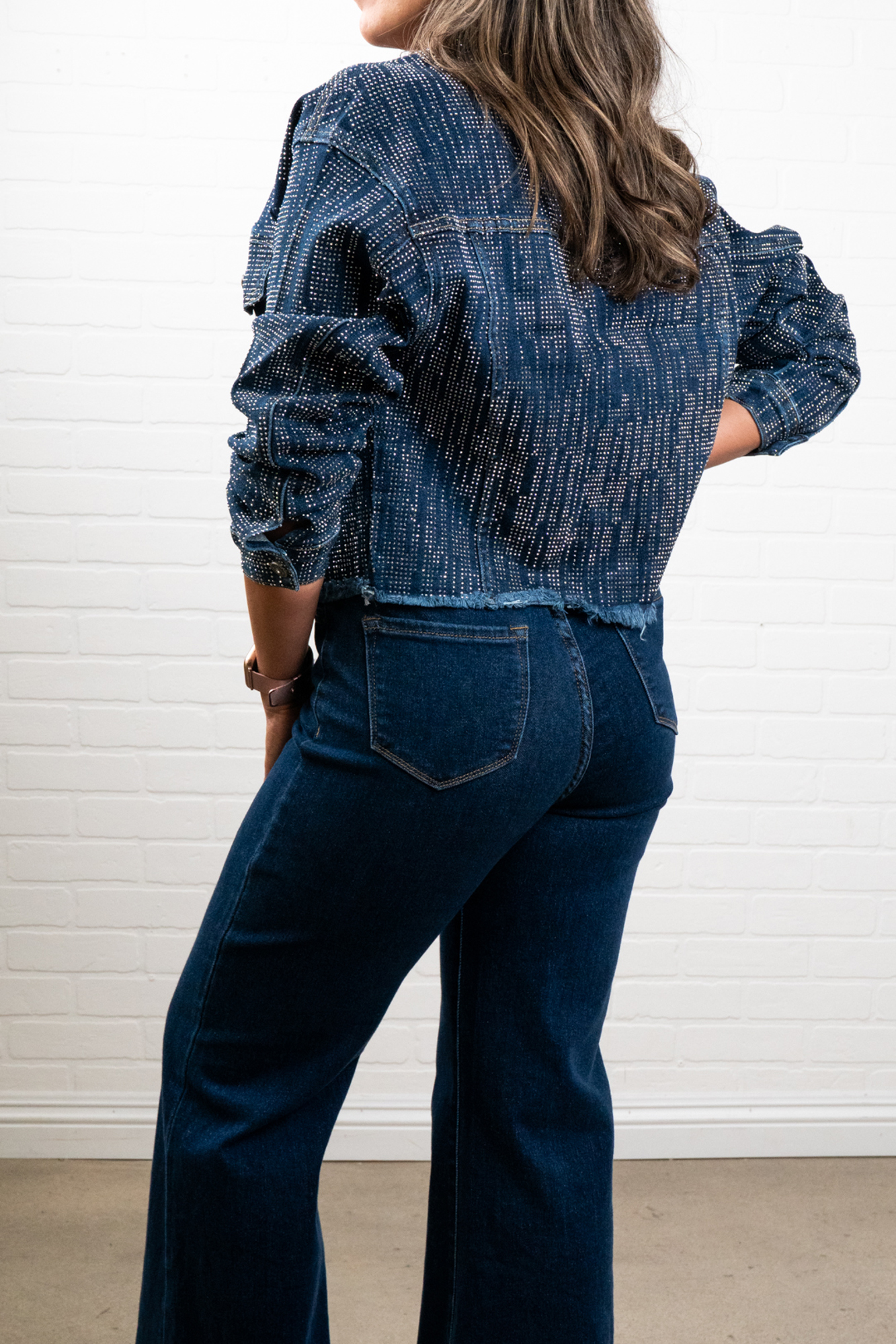 Get ready to dazzle in this fun rhinestone crop jacket that's pure personality. Covered in eye-catching sparkles, this piece transforms any outfit into a show-stopping look.