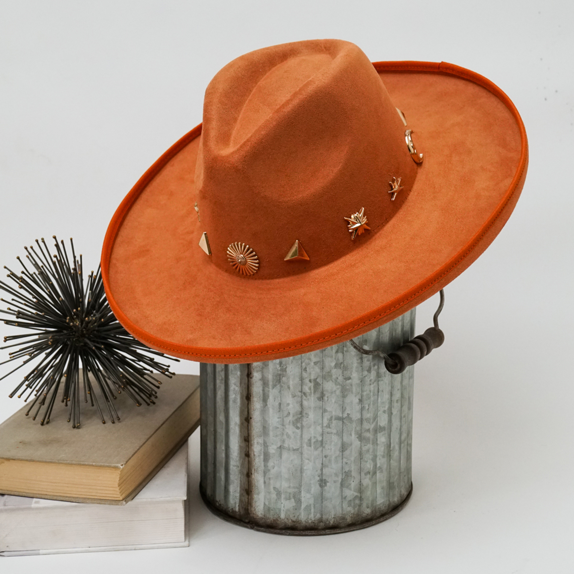 Wide Brim Fedora Hat with Pendant Accents