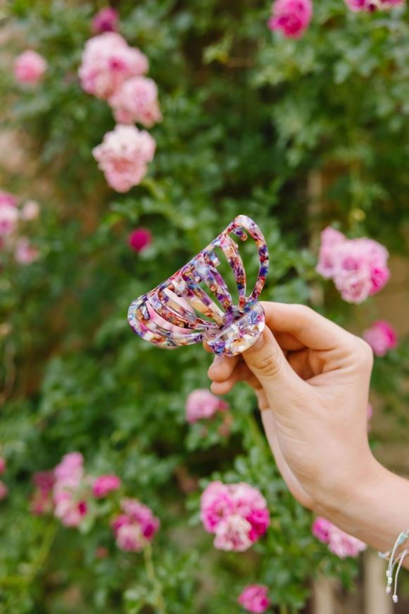 I love this claw clips trend because they are so easy and don't crease your hair!!! You can do so many fun updos and it gives you such a chill effortless but classy look. LOVE. This clip has an amazing marble pattern with purple, blue, and cream colors. The style of it is actually so cute and it approximately 3.5 inches long!
