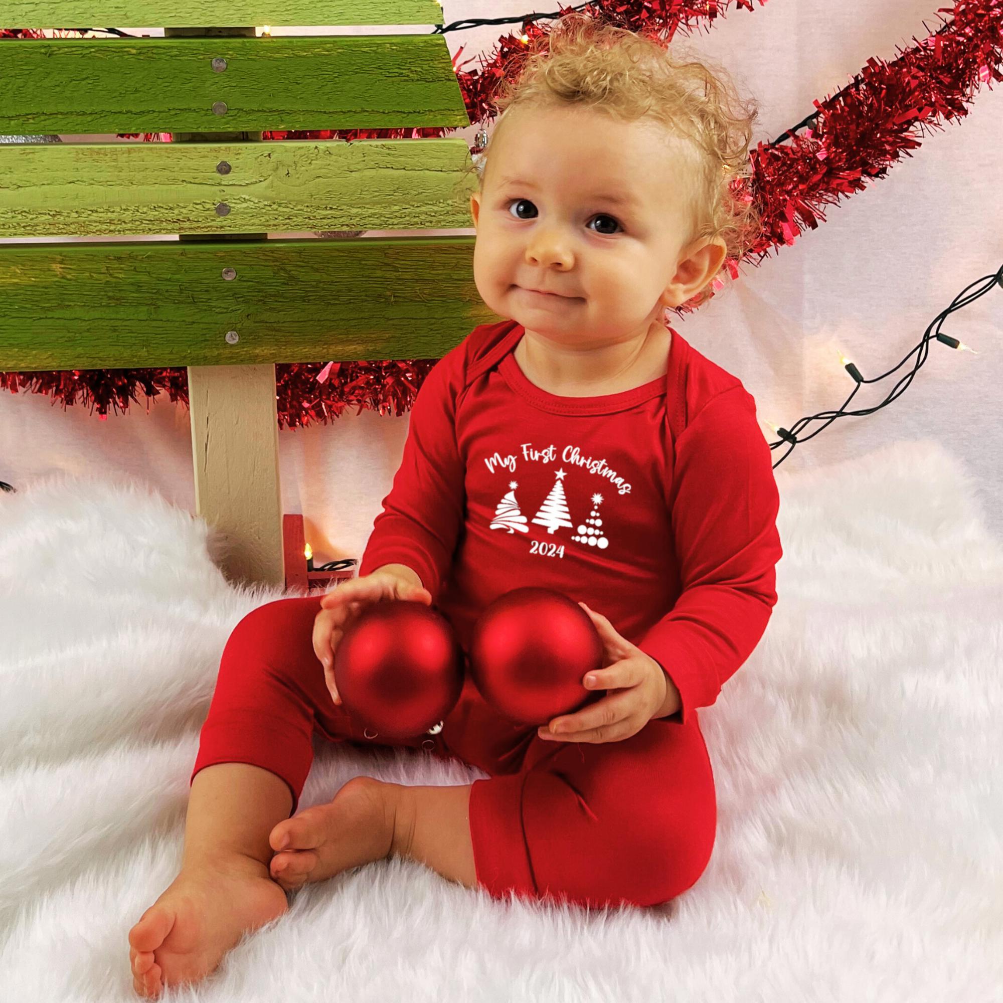 This festive romper is sure to have baby in good spirits this holiday season! It features holiday graphics printed in white, child safe transfer vinyl. Both the garment and graphic are durable and wash well! The rompers are high-quality, 95% Cotton/5% Spandex, and soft! Snaps located along the inside bottom of garment.