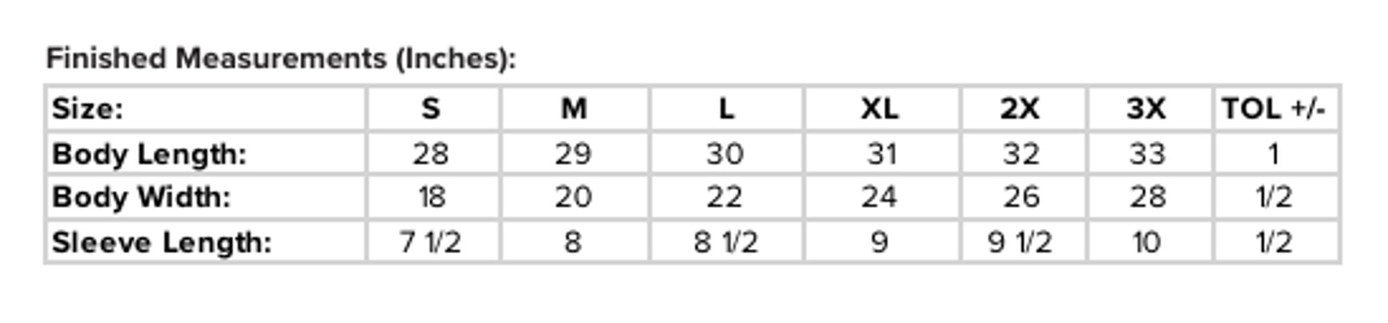 The graphic on these shirts is printed in house using vinyl and both the shirt and graphic are very durable and wash well. The shirts are high-quality, 4.5 oz., 65% Polyester/35% Combed Ringspun Cotton. Sizes are Adult Unisex, true fit.