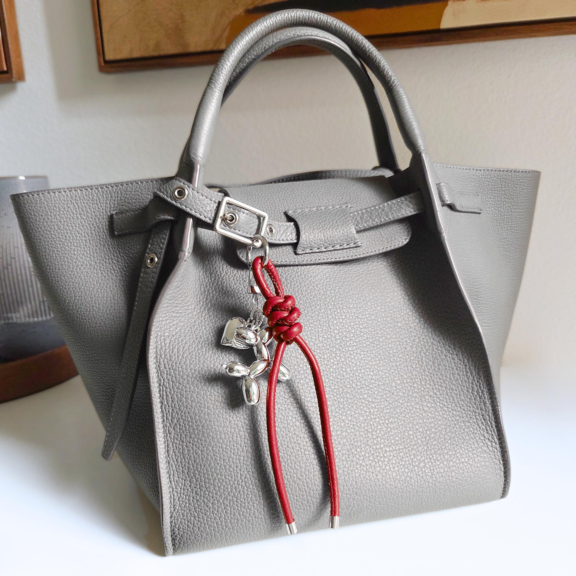 Balloon Dog Bag Charm, Knotted Leather Rope Keychain, Heart / Puppy Purse Accessory