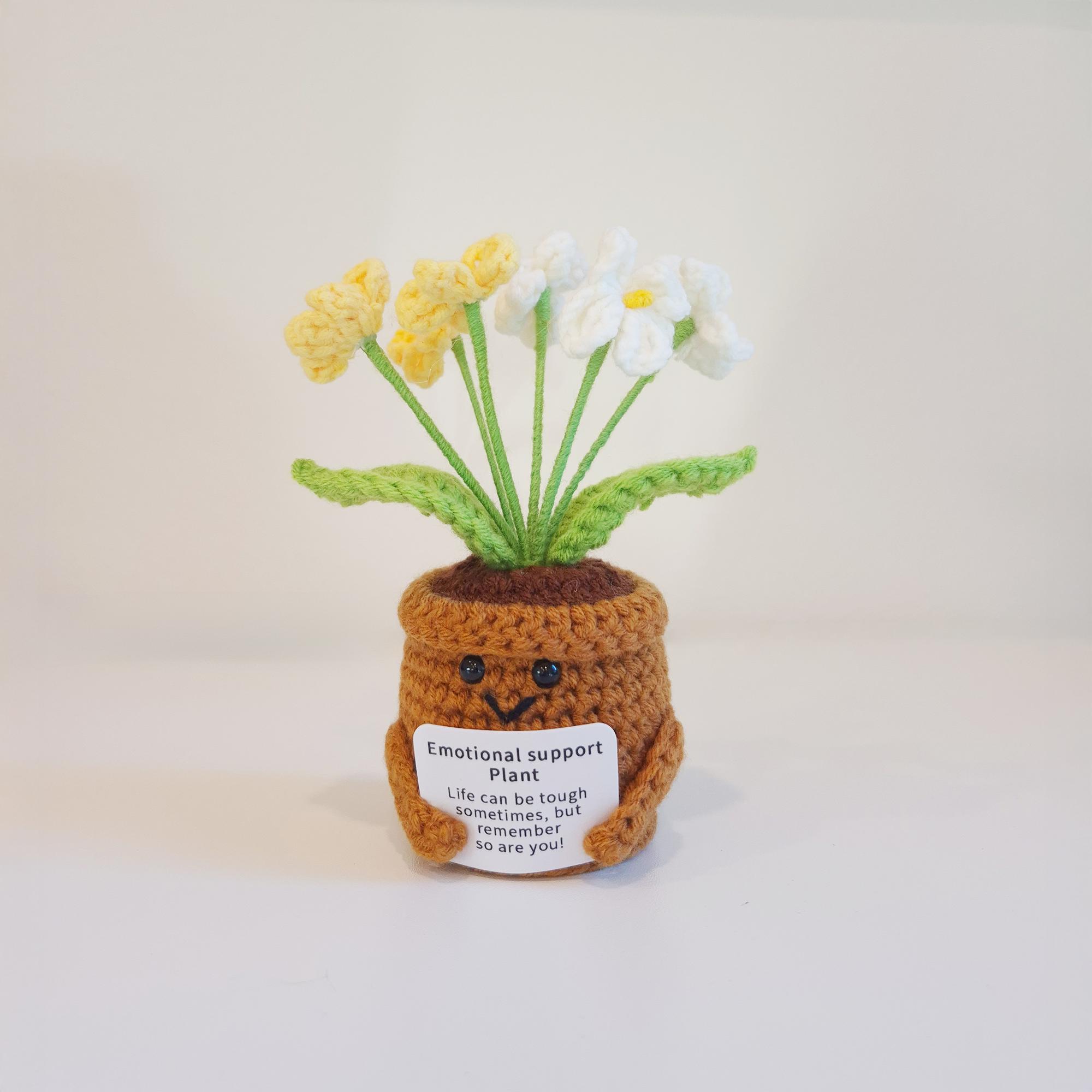 Crochet Flower Hug Pot – Emotional Support Potted Plant with Positive Message, Gift for Mom, Dad, or Teacher, Amigurumi Home Decor
