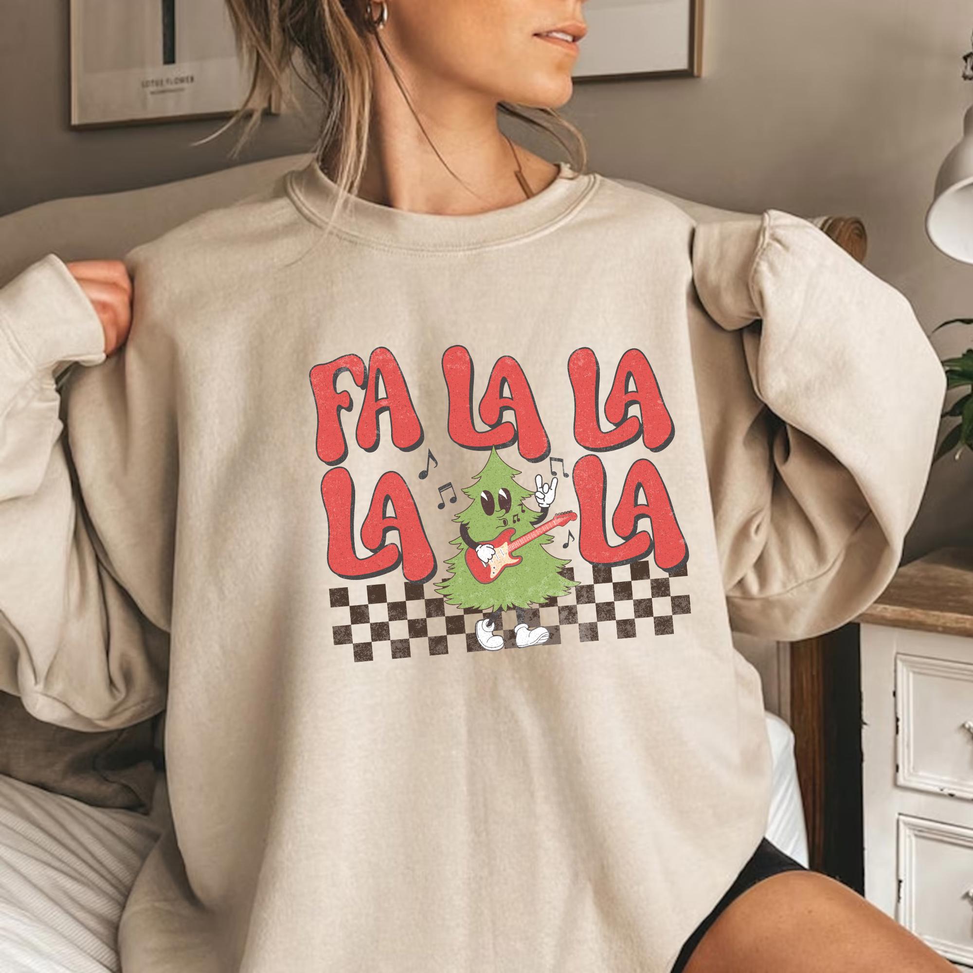 Fa La La La Christmas Sweatshirt – Funny Holiday Graphic Crewneck, Retro Festive Sweater, Cozy Unisex Winter Outfit, Gift for Everyone
