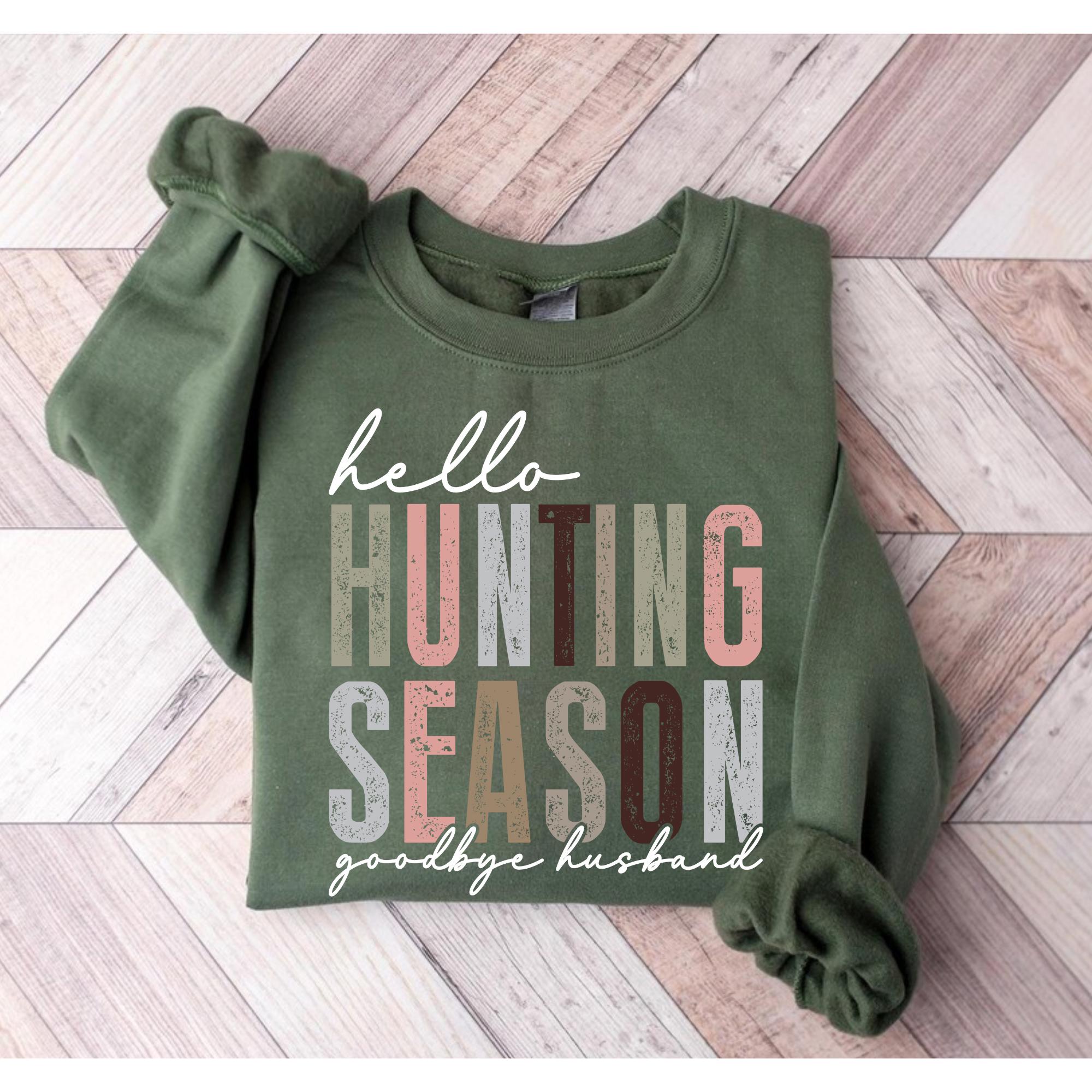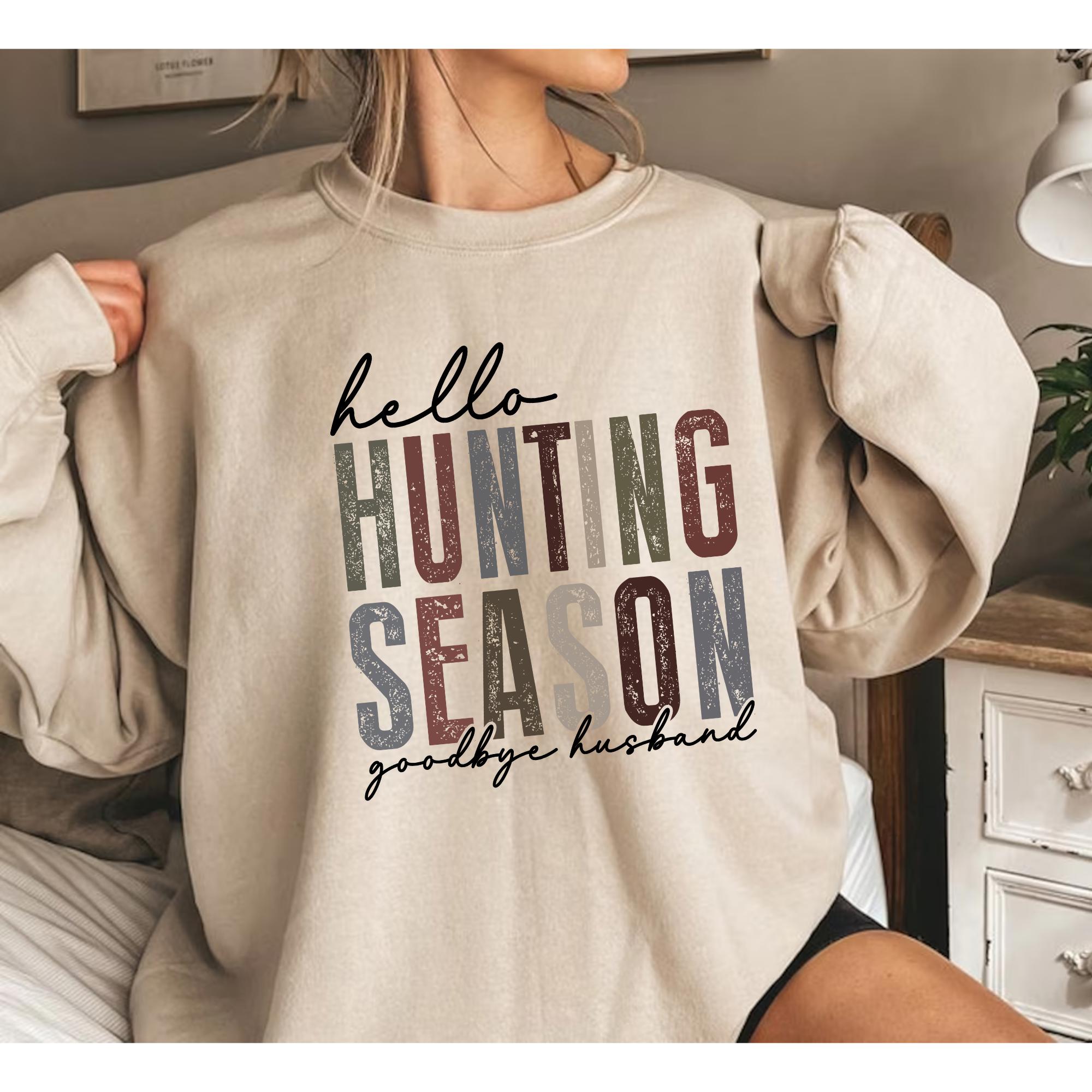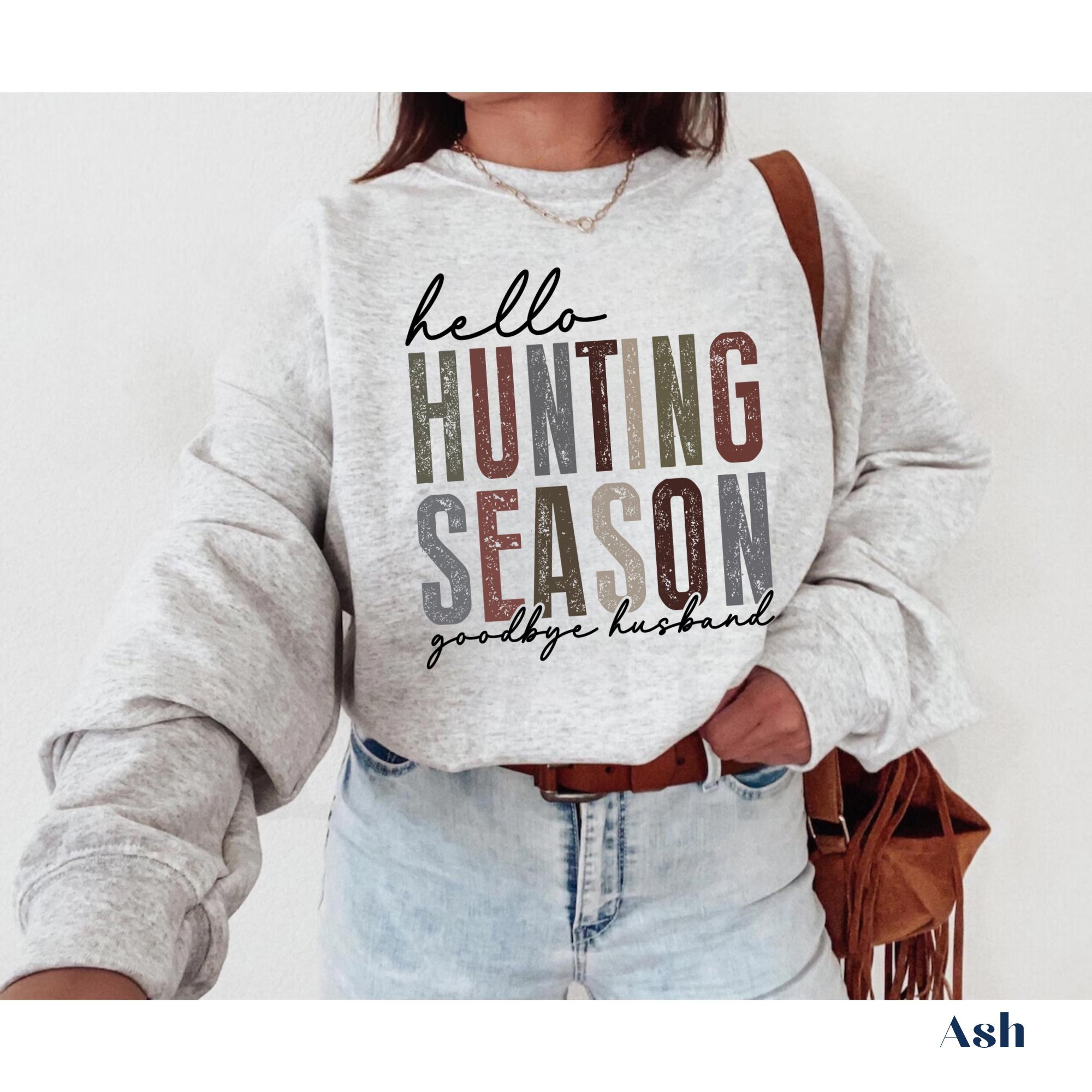 Hello Hunting Season Sweatshirt, He's Hunting Shirt, Hunting Sweatshirt, Hunting Wife T shirt, Abandoned Hunting Wife Sweater, Deer Sweater