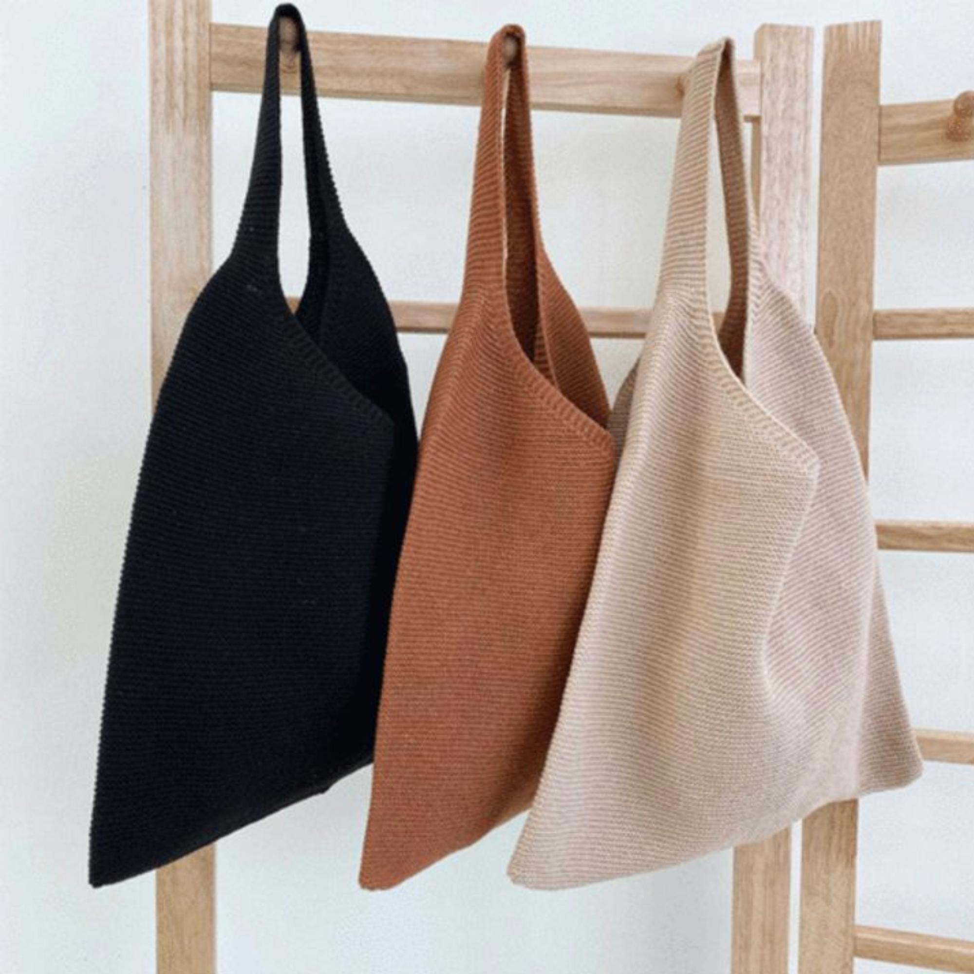 Knitted Shoulder Bag, Minimalist Tote Purse for Women, Casual Everyday Knit Bag, Soft Slouchy Hobo Bag, Neutral Aesthetic, Gift for Her