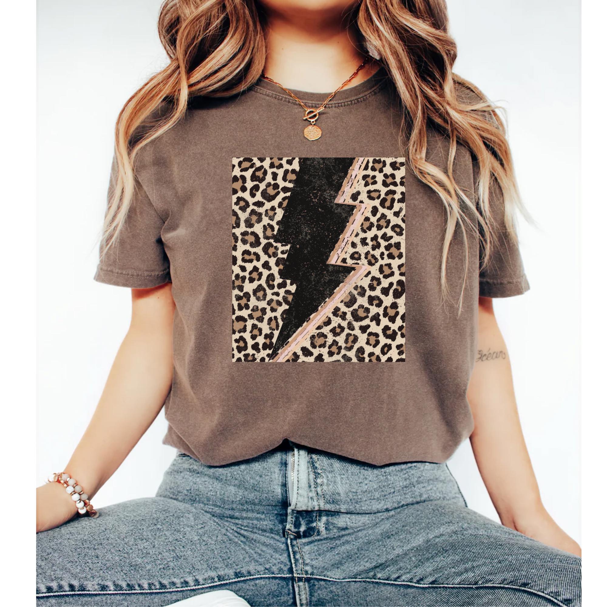Make a statement with our best-selling Leopard Lightning Bolt Tee! This edgy yet feminine graphic t-shirt features a vintage-inspired animal print design that adds the perfect pop of trendiness to your everyday look.